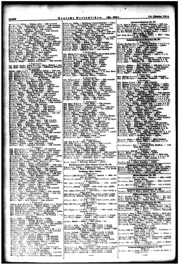 16.03.1893 - 21.08.1915 22 Jahre alt aus Binzen Infanterie Regiment No. 97, 12. Kompagnie Galt zuerst als vermisst, danach als gefallen *Onkel der Ehefrau des Neffen des Onkel durch Heirat der Ehefrau des Grossneffen des Schwagers der Ehefrau des Cousin des Onkels durch Heirat der Ehefrau des Grossonkels zweiten Grades von Fabian Coulot |