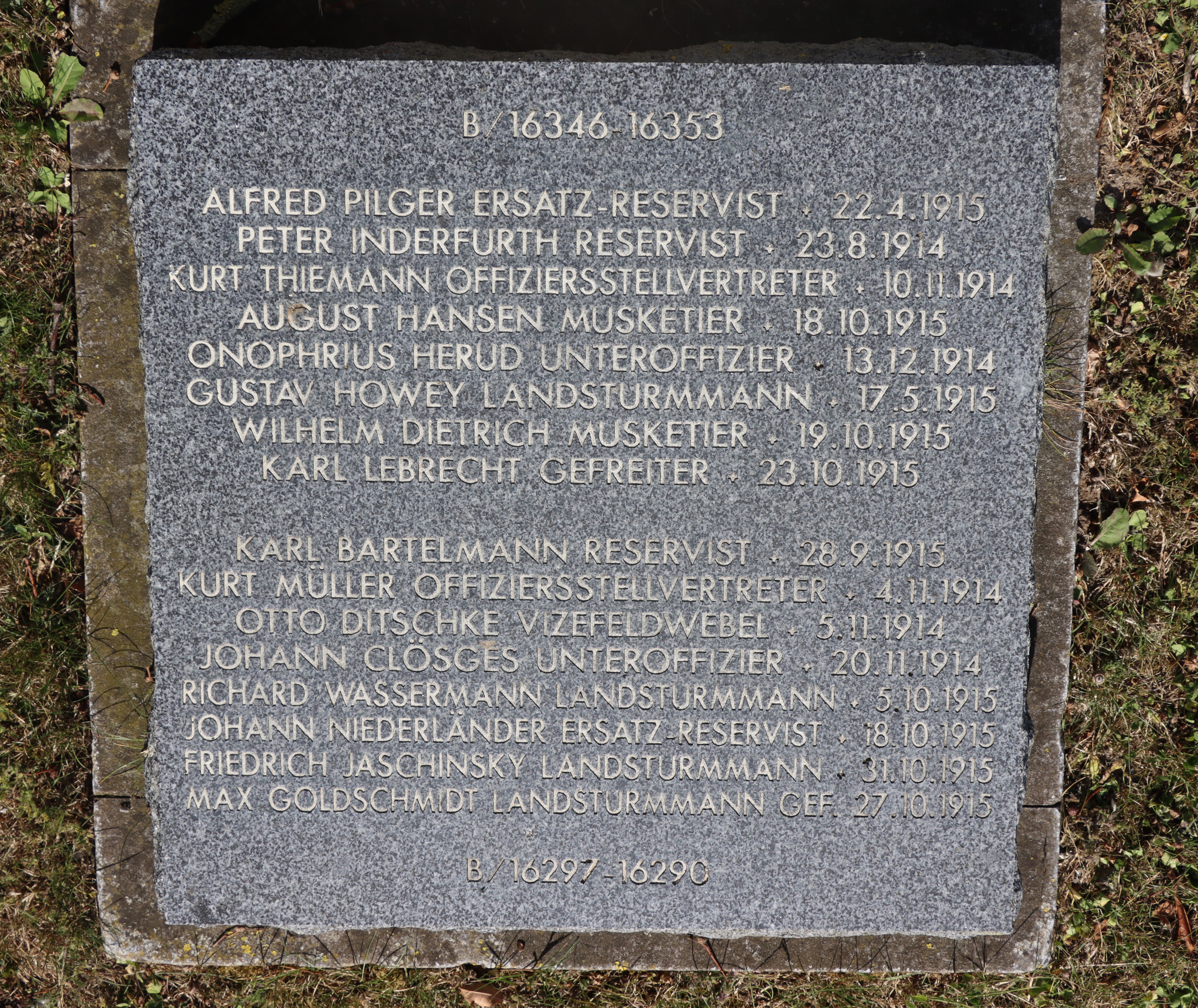 | Auf dem Militärfriedhof in Sissonne liegen, neben dem britischen Militärfriedhof, 14'694 deutsche Soldaten. Musketier Wilhelm Gorenflo aus Hauingen liegen ebenfalls hier. |