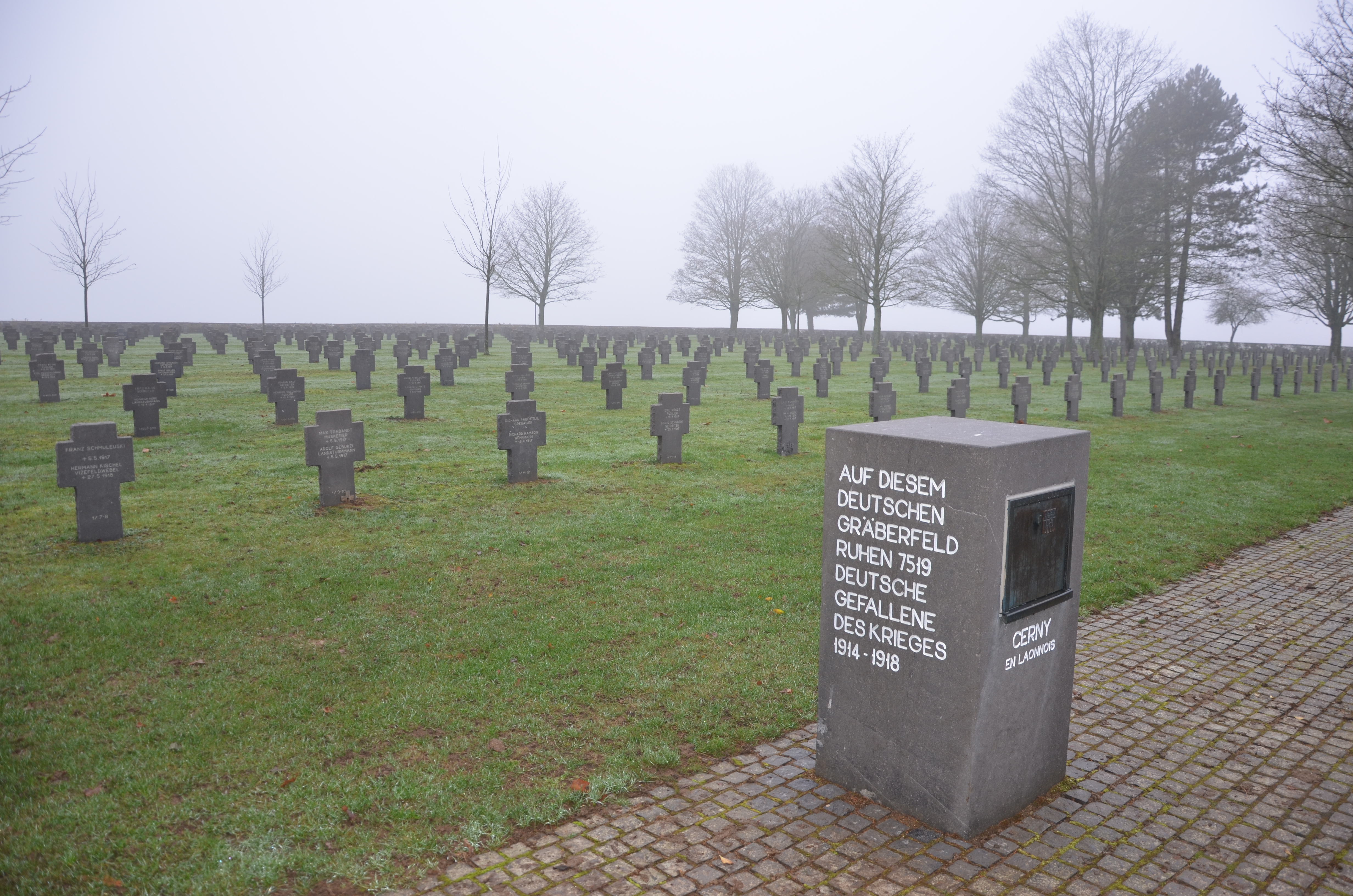 Neben der Gedenkkapelle an der Route "Chemin des Dames" befindet sich in Cerny-en-Laonnois der französische Soldatenfriedhof mit 5'125 Gefallenen und nebenan der deutsche Soldatenfriedhof mit 7'519 deutschen Gefallenen. |