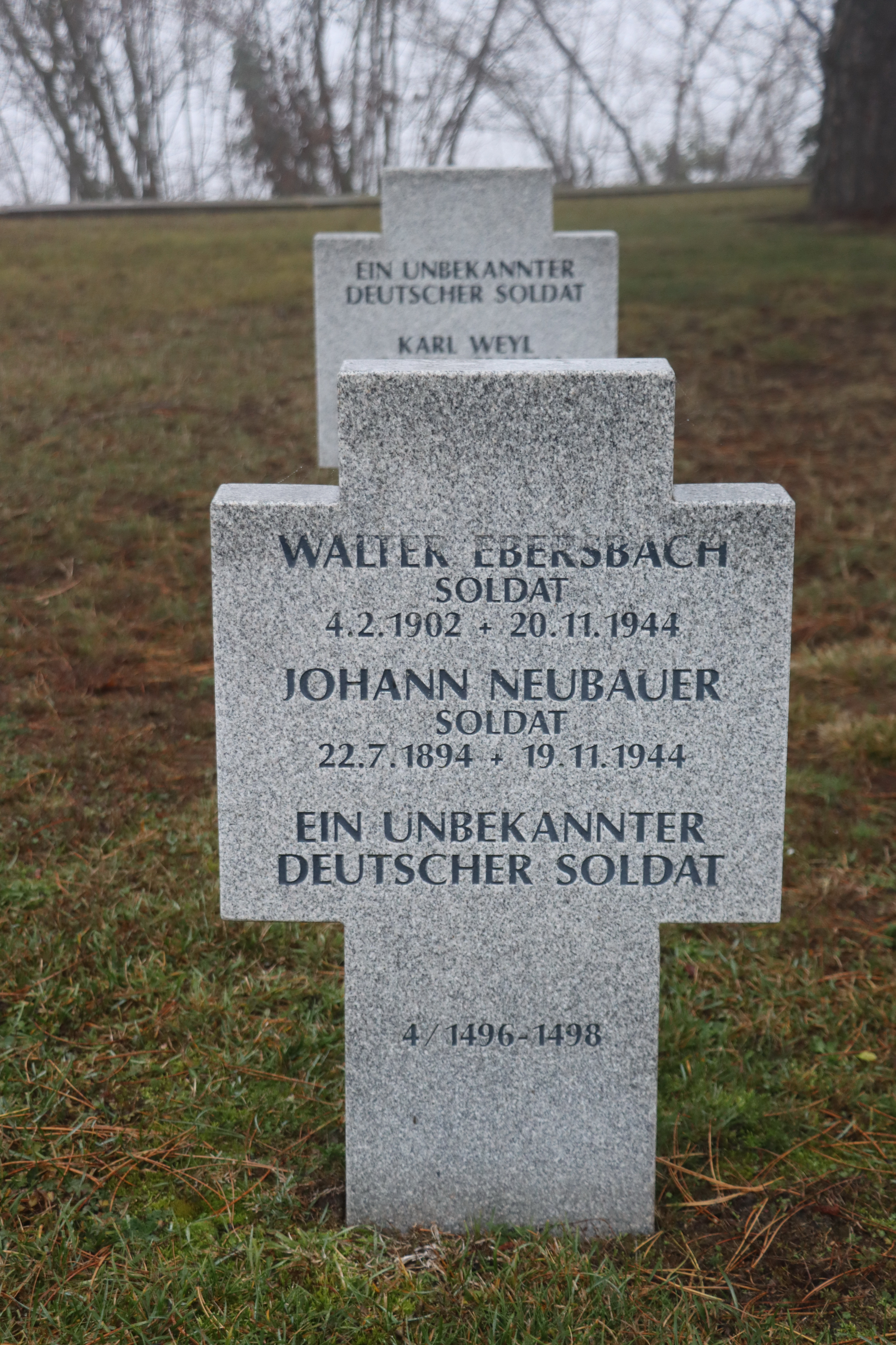 Unteroffizier BAHLINGER Albert Friedrich 02.11.1921 - 22.11.1944 Galt zuerst als vermisst. Verstarb in russischer Kriegsgefangenschaft in Stalino (RUS) |