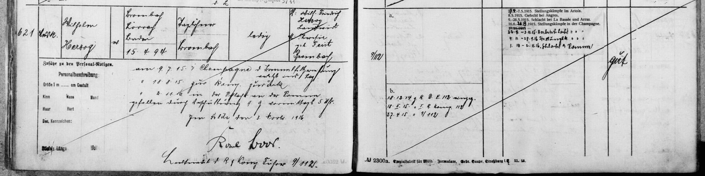 Ersatz-Reservist STOFER Wilhelm 09.12.1888 - 10.05.1915 27 Jahre alt aus Brombach 6. Badische Infanterie-Regiment Kaiser Friedrich III No.114 1. Bataillon, 1. Kompagnie Gefallen |