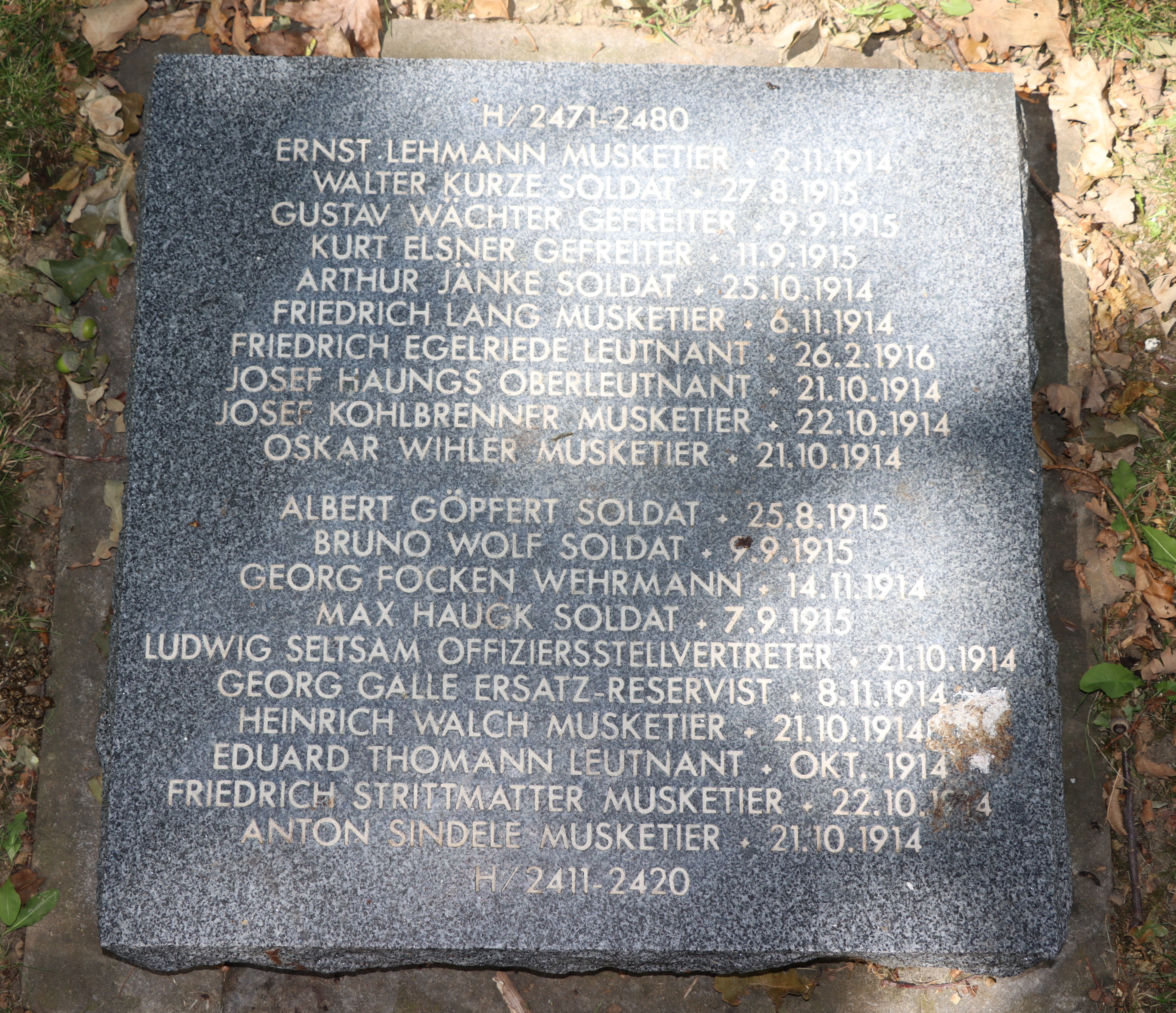 WENK Hermann 21.05.1893 - 11.09.1917 24 Jahre alt aus Brombach Gefallen in Chemin des Dames (FR) Kriegsgräberstätte in Montaigu I (FR) Block 1, Grab 18 |