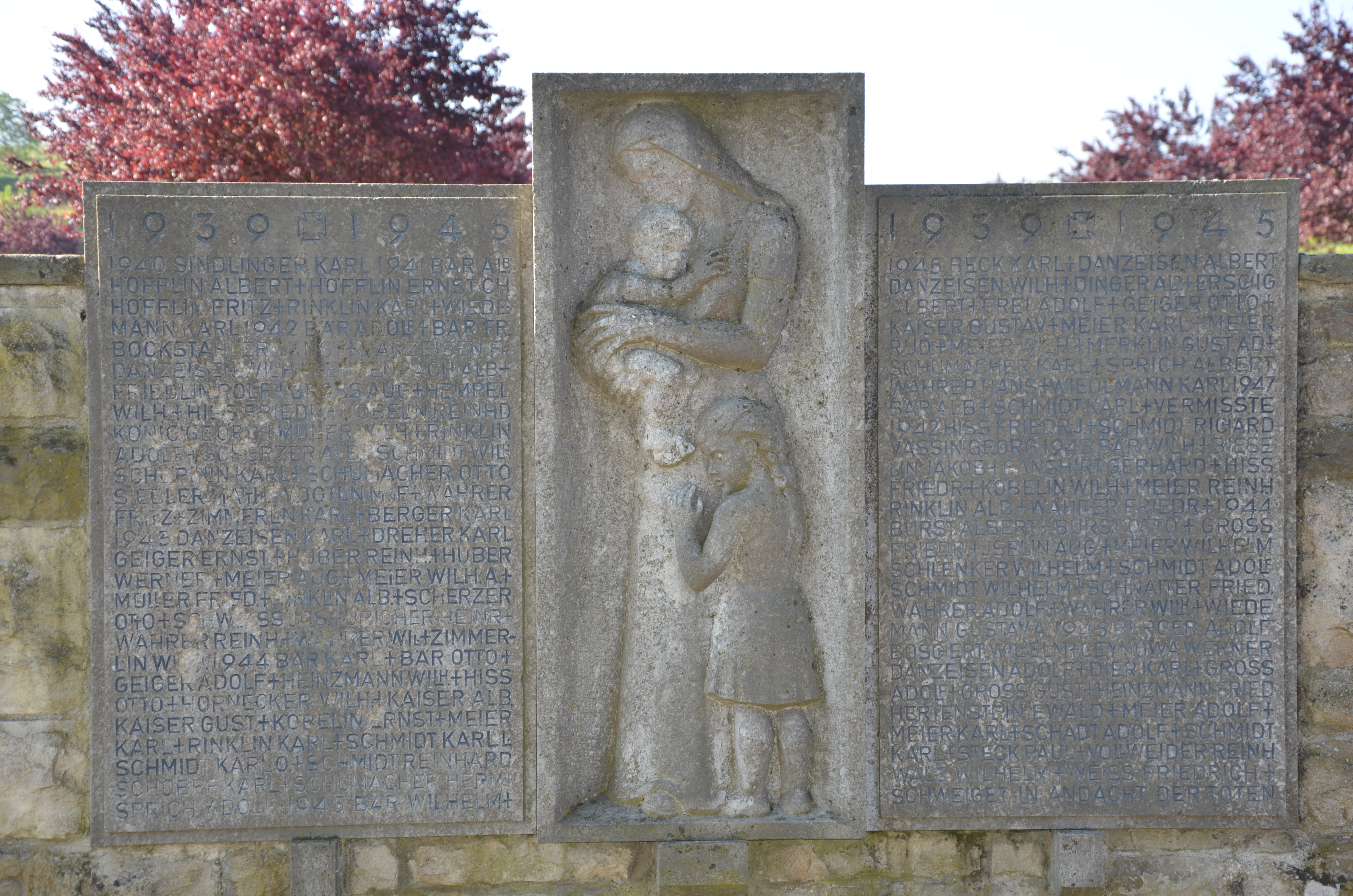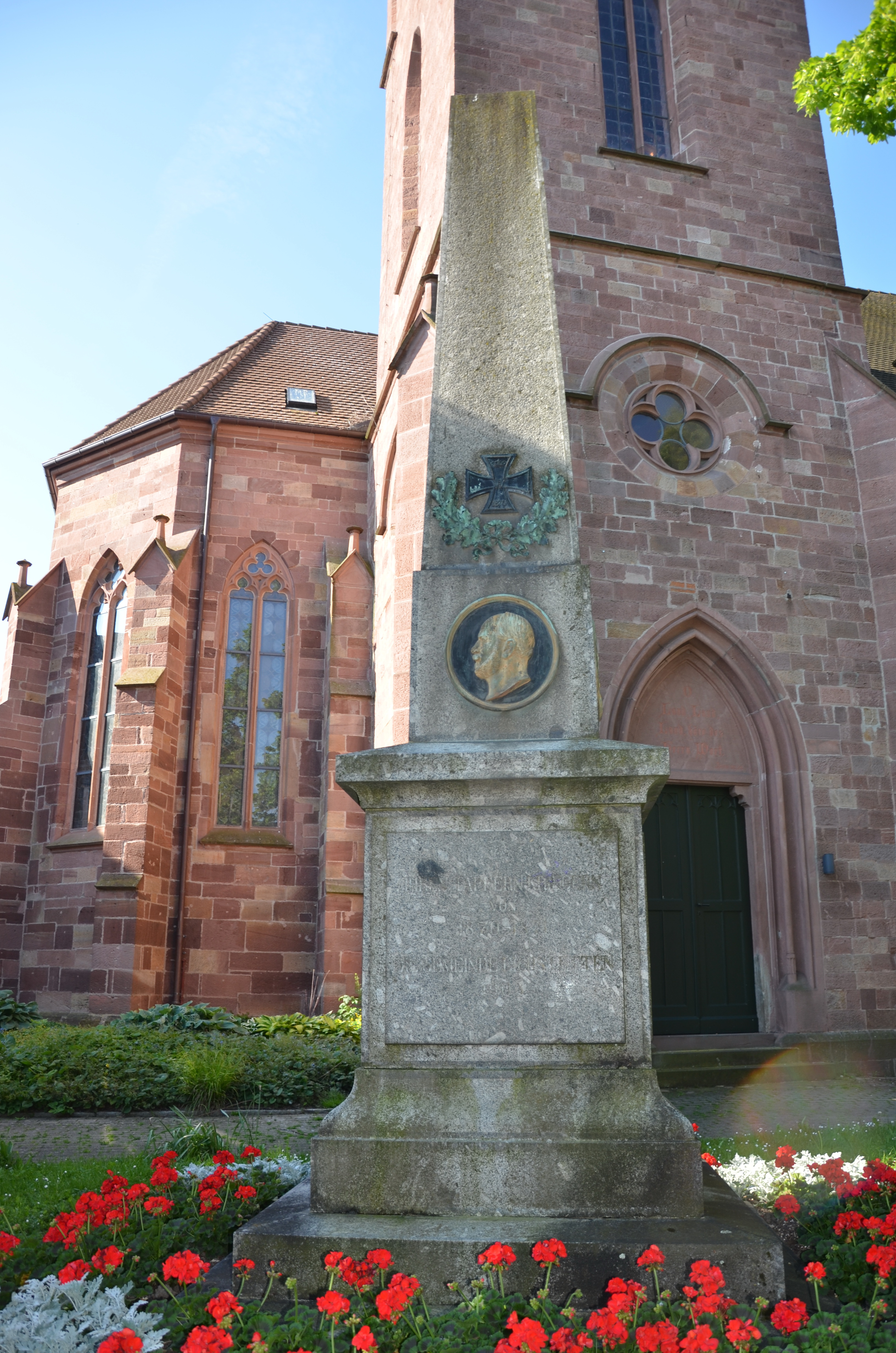 Im Dorfkern bei der Evangelischen Kirche, neben dem Rathaus steht das Denkmal mit den Namen der Kriegsteilnehmer am Deutsch-Französischen Krieg (1870/71)