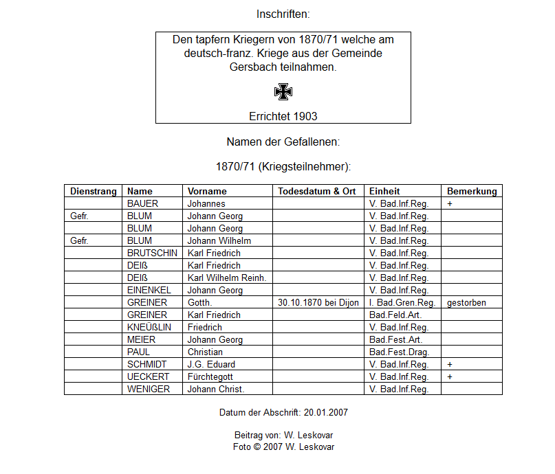 WENIGER Johann Christian 13.11.1850 - ? aus Gersbach Grossherzoglich Badisches 5. Infanterie Regiment Teilnahme am Deutsch Französischen Krieg 1870/71 *Urgrossonkel 5. Grades von Fabian Coulot |