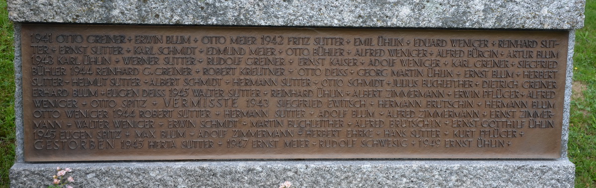 GREINER Gustav Albert 20.09.1910 - 12.02.1944 34 Jahre alt aus Hasel Sein Grab befindet sich auf der Kriegsgräberstätte in Pomezia (Italien) Block E, Grab 515 |