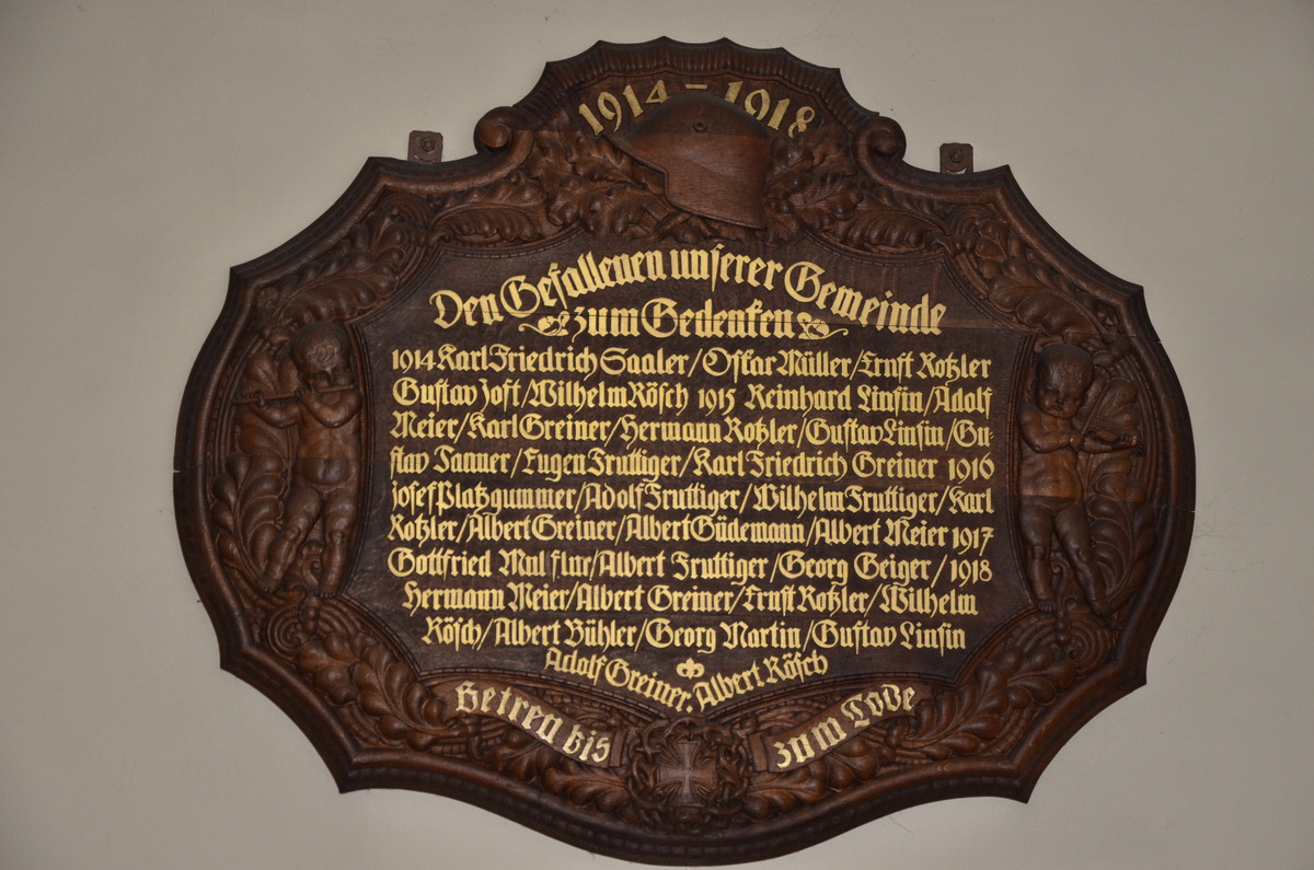 Familiengeschichte: Gustav Reinhard GREINER (24.07.1881 - 03.08.1967) verlor seine Frau Marie Lina FRICKER (26.05.1888 -24.01.1917) bereits 7 Jahre nach der Hochzeit an Lungenentzündung. Der zweitälteste Sohn Karl GREINER (21.10.1911 - 10.07.1934) starb im 23. Altersjahr. Die restlichen 3 Söhne von Gustav Reinhard GREINER sind im Krieg gefallen. *Die drei sind Brüder und sind Achte Cousins zweiten Grades der Grossmutter von Fabian Coulot verwandt |