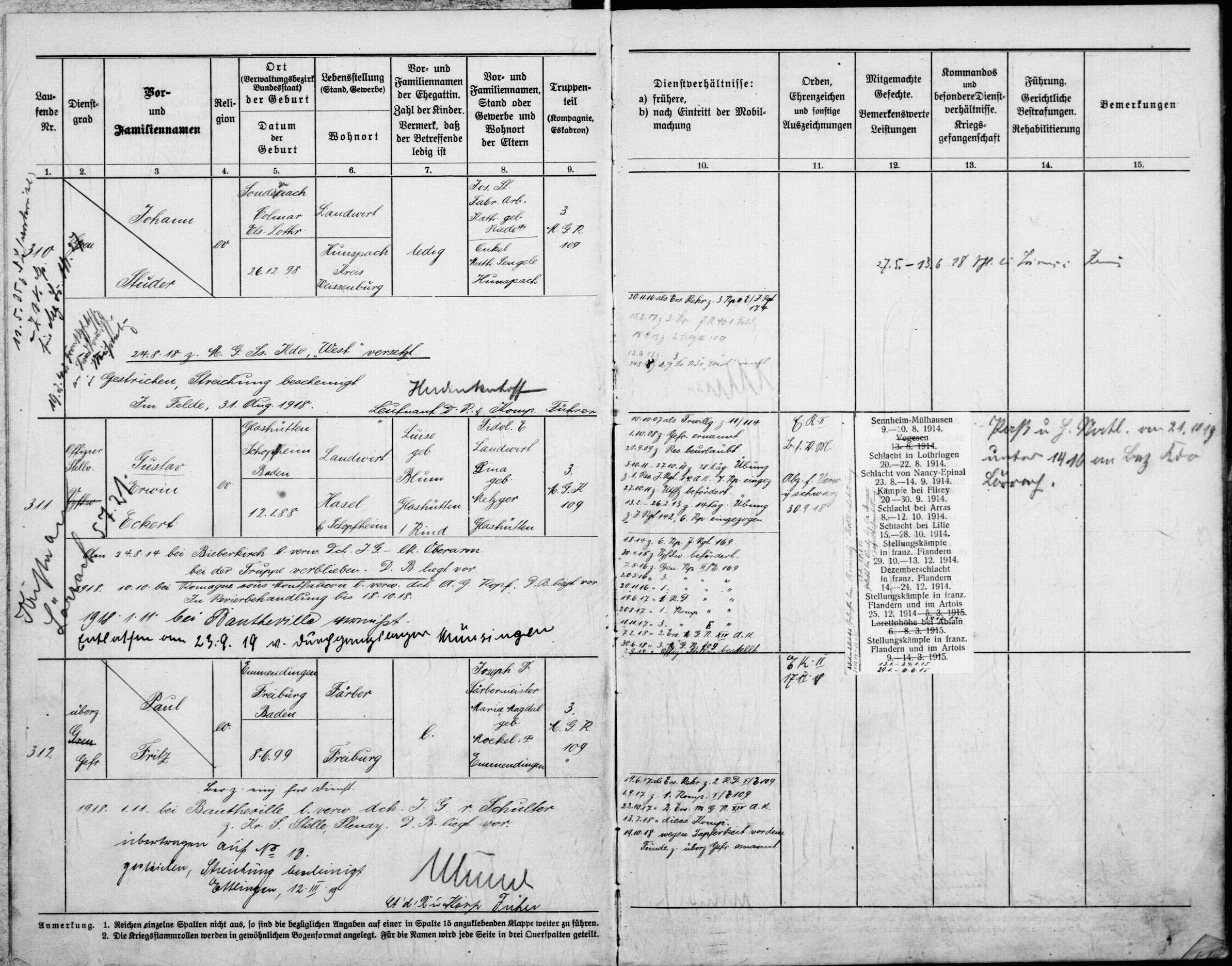 Adolf 30.03.1897 - 1917 20 Jahre alt aus Hasel Reserve Infanterie Regiment 40 4. Kompagnie Gestorben infolge Krankheit im Reserve Feldlazarett 14 *Bruder von Ernst Albert Fruttiger |