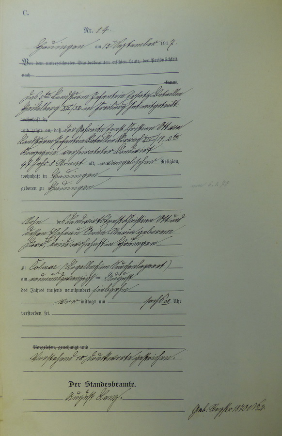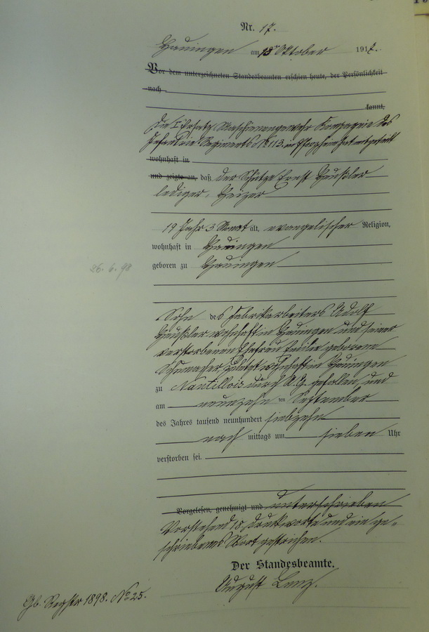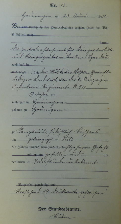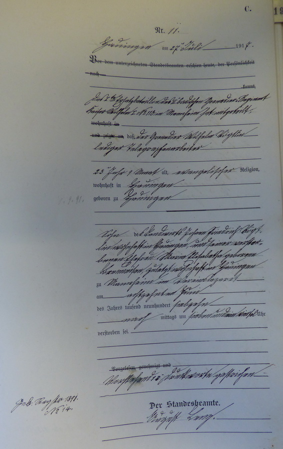 Ernst 05.06.1896 - 25.07.1917 21 Jahre alt aus Hauingen Vermerk auf Verlustliste und Ortsfamilienbuch * Cousin dritten Grades zum Cousin zweiten Grades der Grosstante von Fabian Coulot |