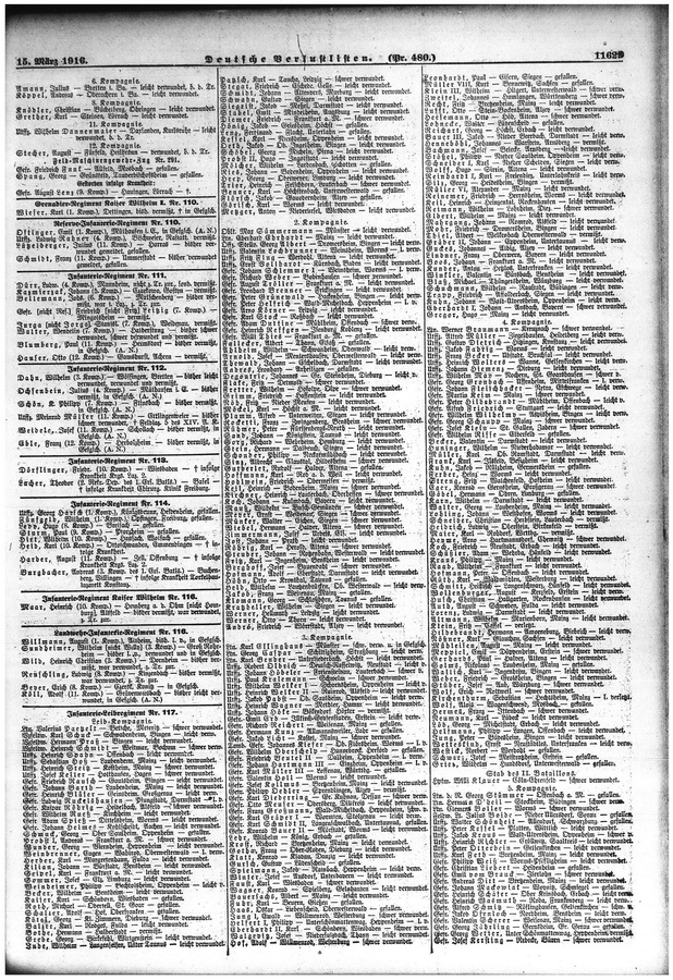 HOFMANN Ernst 06.03.1882 - ? Grenadier Regiment No.123 8. Kompagnie Im Krieg vermisst *Cousin drietten Grades der Tante der Urgrossmutter der Mutter von Fabian Coulot |
