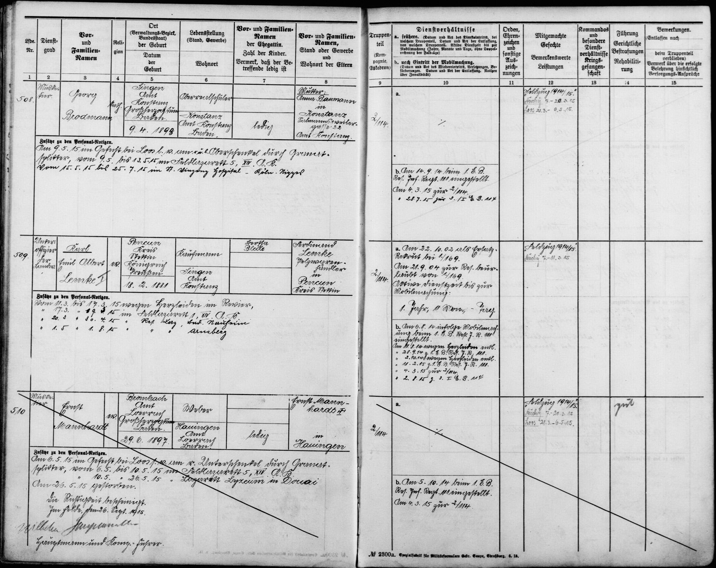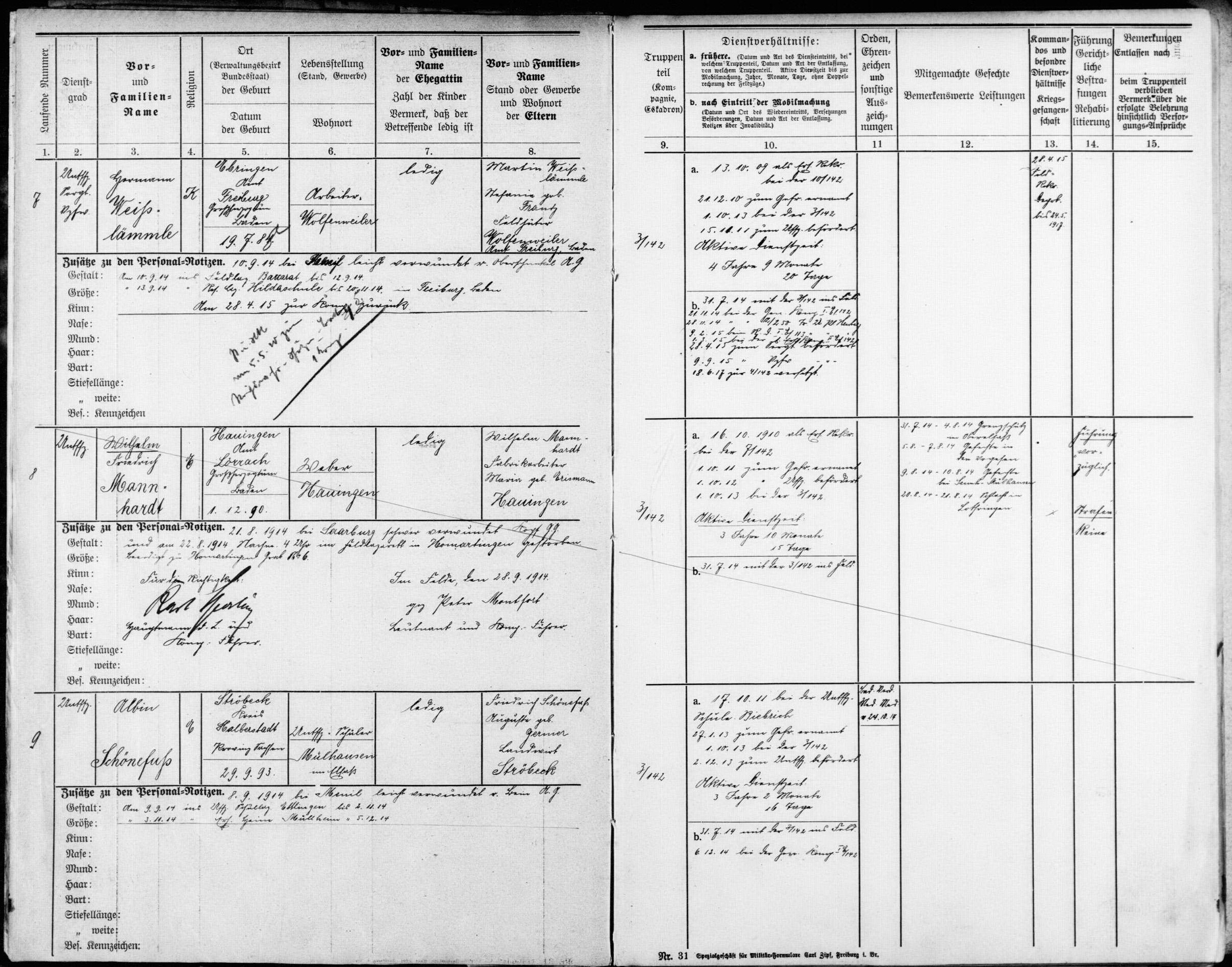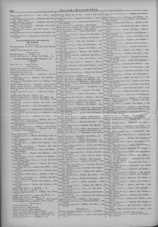 | THOMAS Alfons 23.10.1892 - ~1916 21 Jahre alt aus Hauingen Ersatz Infanterie Regiment 28 Maschinengewehr Scharschützentrupp 28 Schwer verwundet laut Verlustliste 11.04.1916 Gefallen laut Ortsfamilienbuch Hauingen |