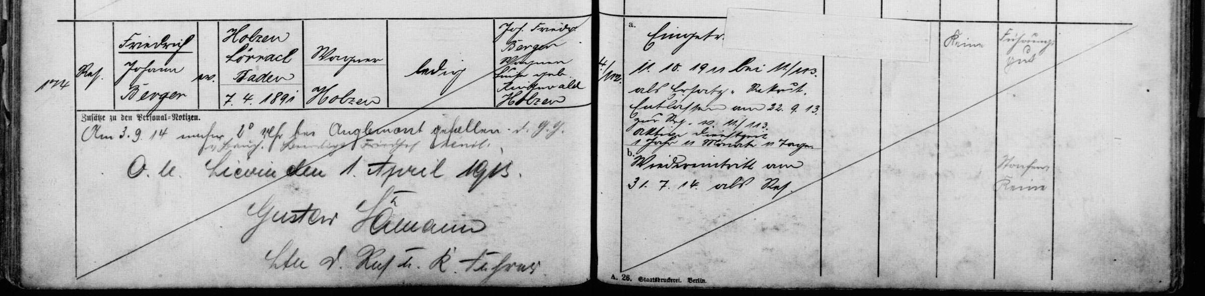 Reservist Johann Friedrich BERGER 07.04.1891 - 03.09.1914 23 Jahre alt aus Holzen 4. Badische Infanterie-Regiment Prinz Wilhelm No.112 4. Kompagnie Gefallen in Anglemont (FR) *Neffe der Schwägerin der Ehefrau des Ehemanns der Ur-Grosstante 4.Grades von Fabian Coulot |