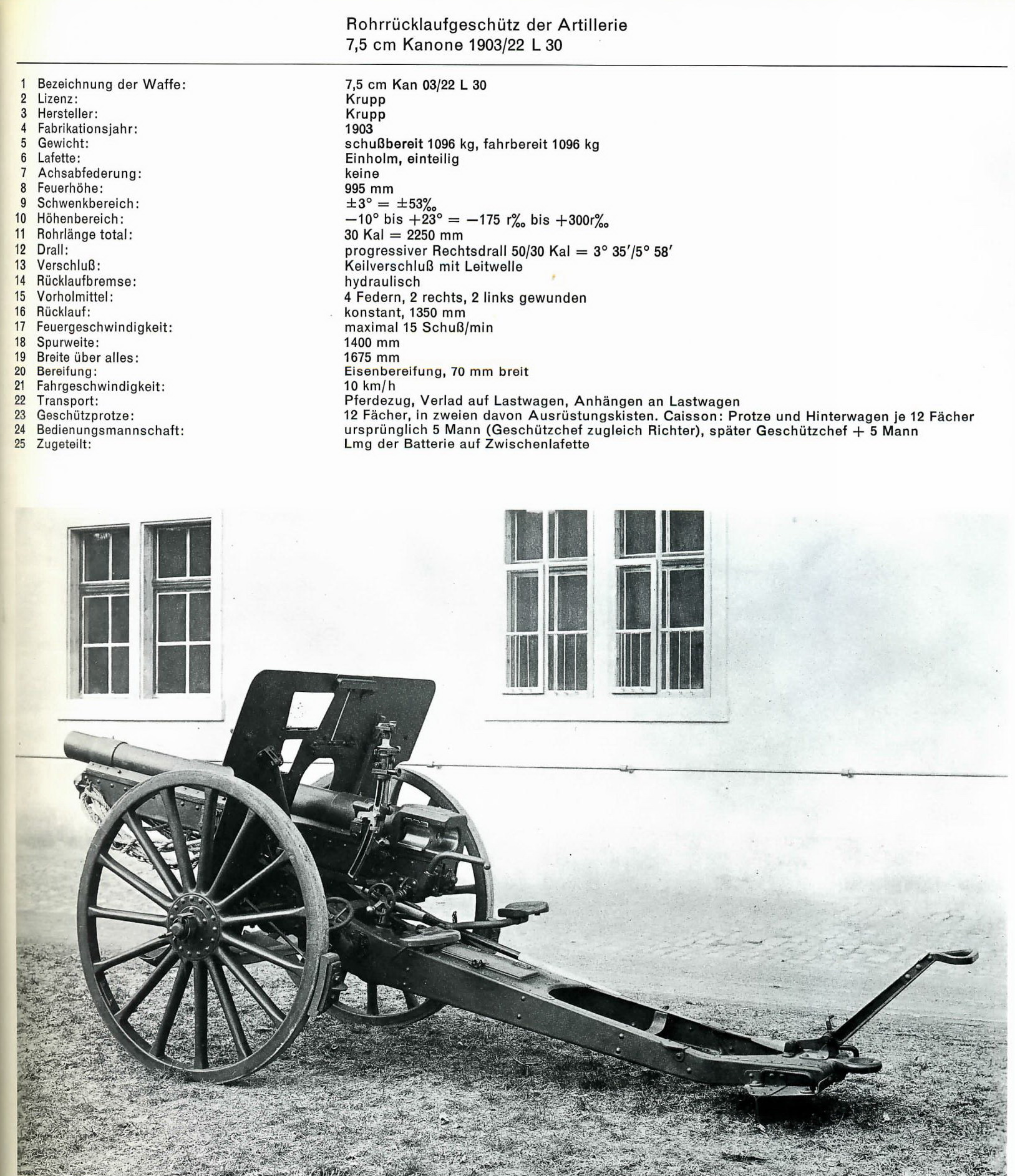 Die Feldkanone Baujahr 1903 wurde durch KRUPP STAHL in Essen hergestellt und dann unter Lizenzbau in Thun. Das Feldgeschütz trägt noch die Originalplakette von KRUPP.