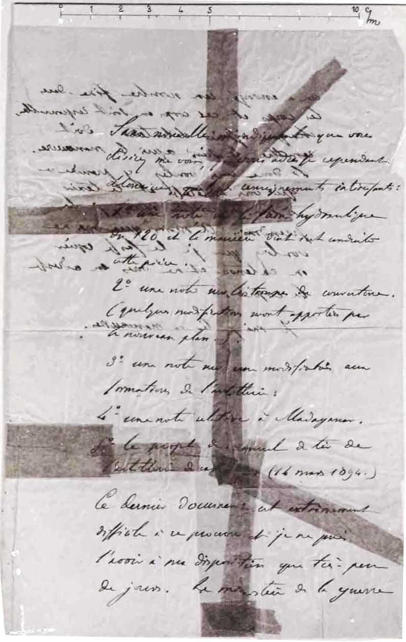 Aus diesem sogenannten Bordereau, einem Verzeichnis beigefügter Dokumente, ging hervor, dass ein französischer Generalstabsoffizier dem deutschen Geheimdienst vertrauliche Informationen zugespielt hatte. Der französische Auslandsgeheimdienst leitete das Schriftstück direkt an das französische Kriegsministerium weiter. |