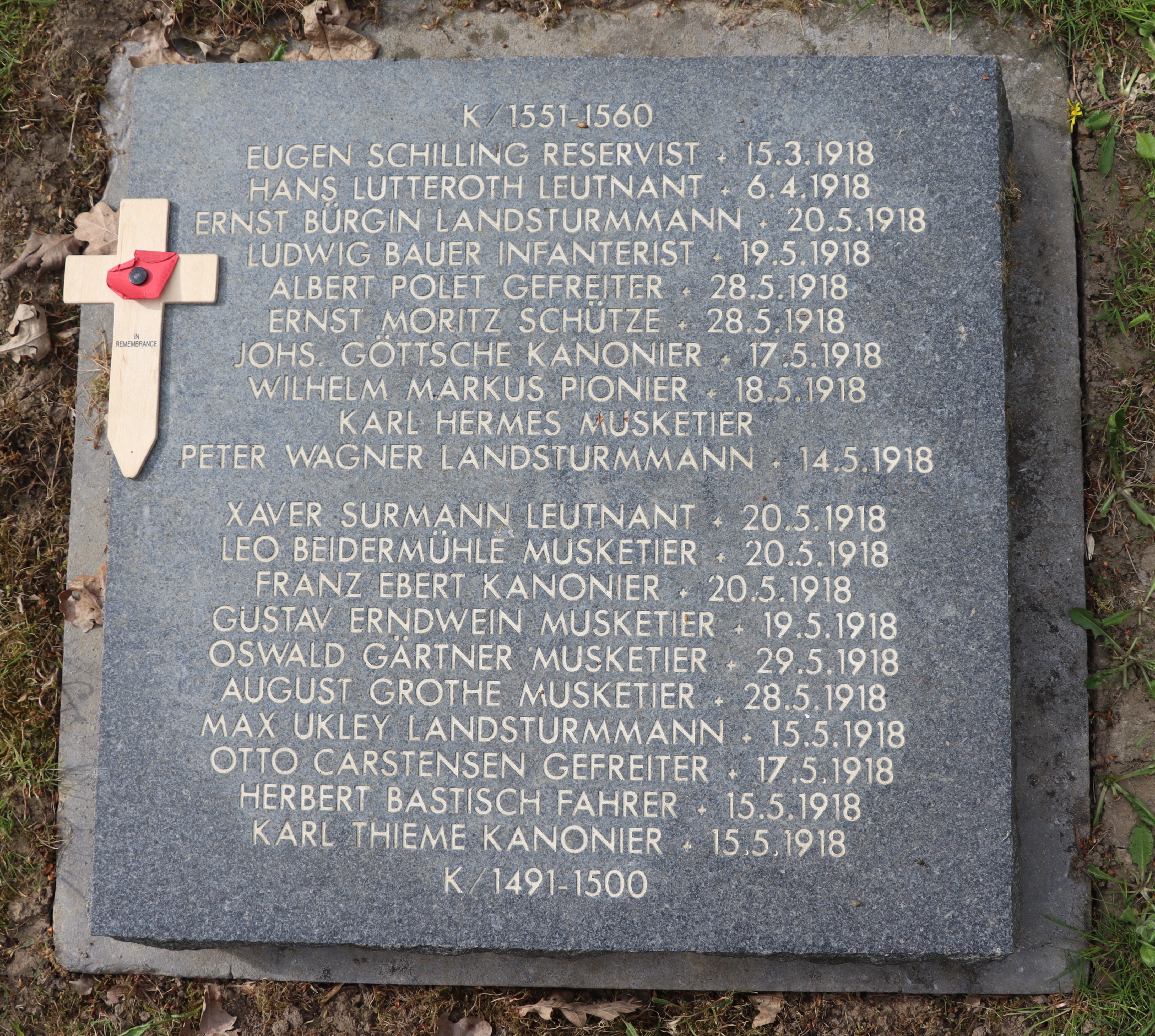 Gefreiter BÜRGIN Albert 18.07.1878 - 17.05.1916 38 Jahre alt aus Niedereggenen Landwehr-Infanterie-Regiment No.125 7. Kompagnie Gefallen in der Champagne (FR) |