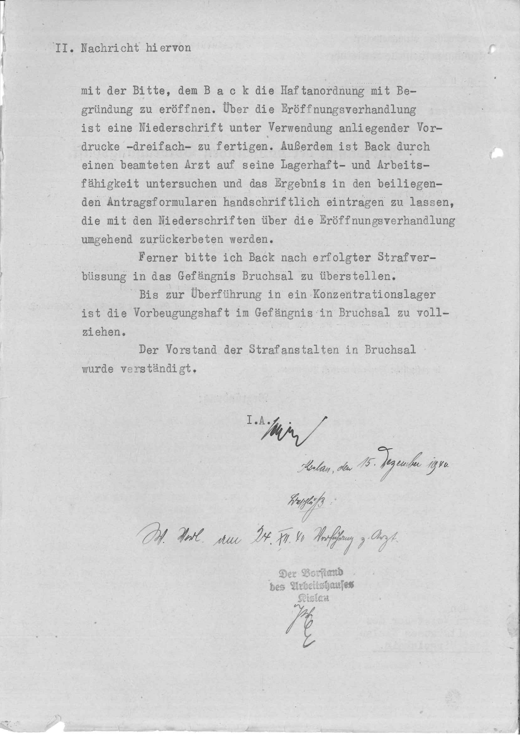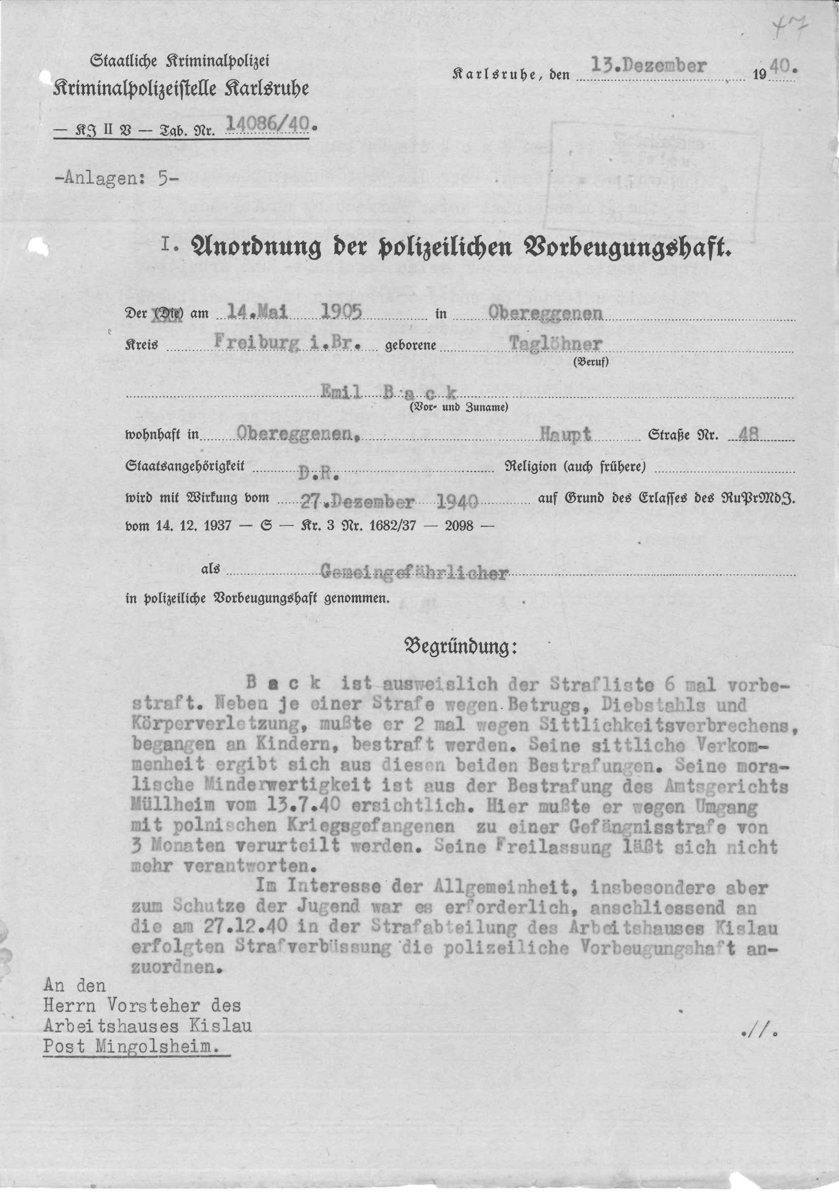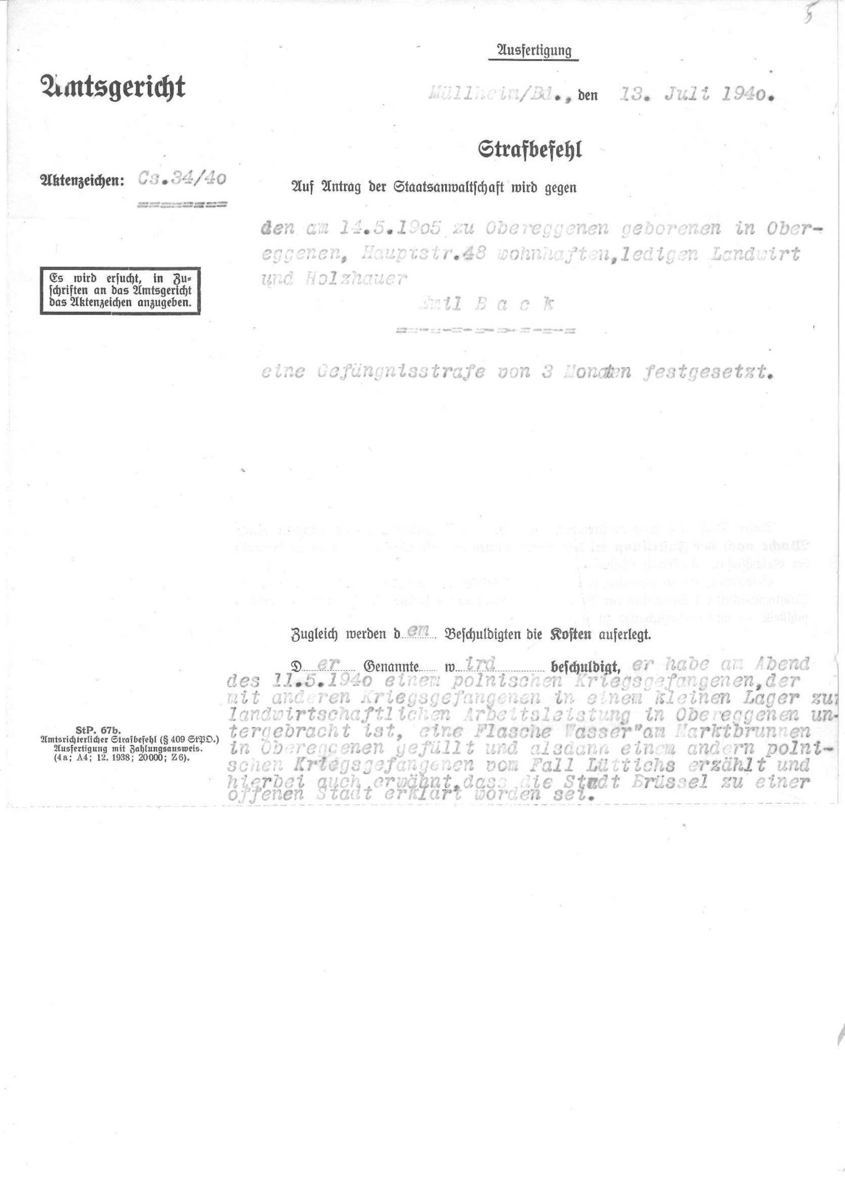 | Strafbefehl: Umgang mit polnischen Kriegsgefangenen. | Anordnung für Vorbeugehaft |