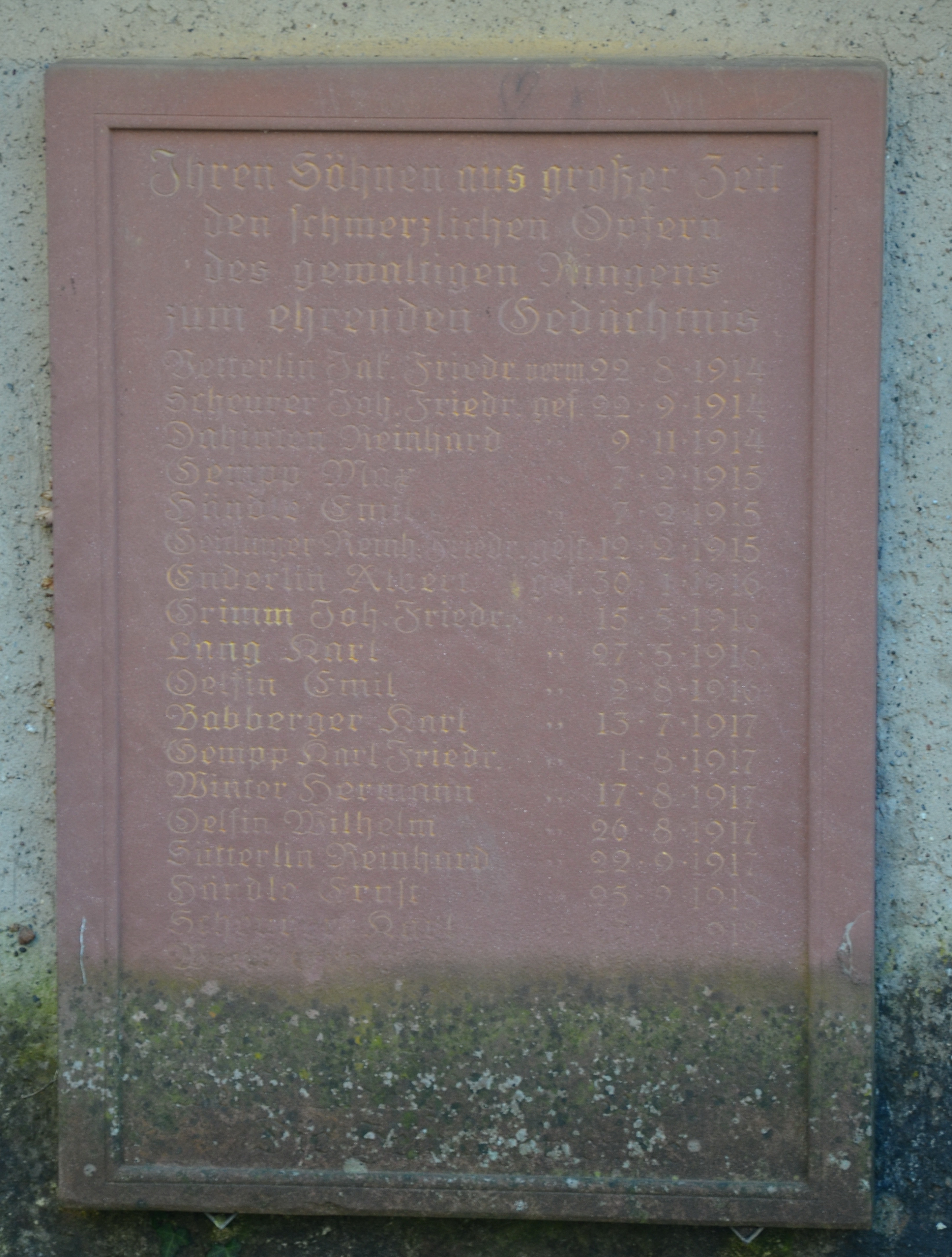 14.10.1877 - 20.09.1917 40 Jahre alt aus Schallbach Gefallen in Frankreich Sein Name ist auch auf dem Denkmal in Wollbach vorhanden |