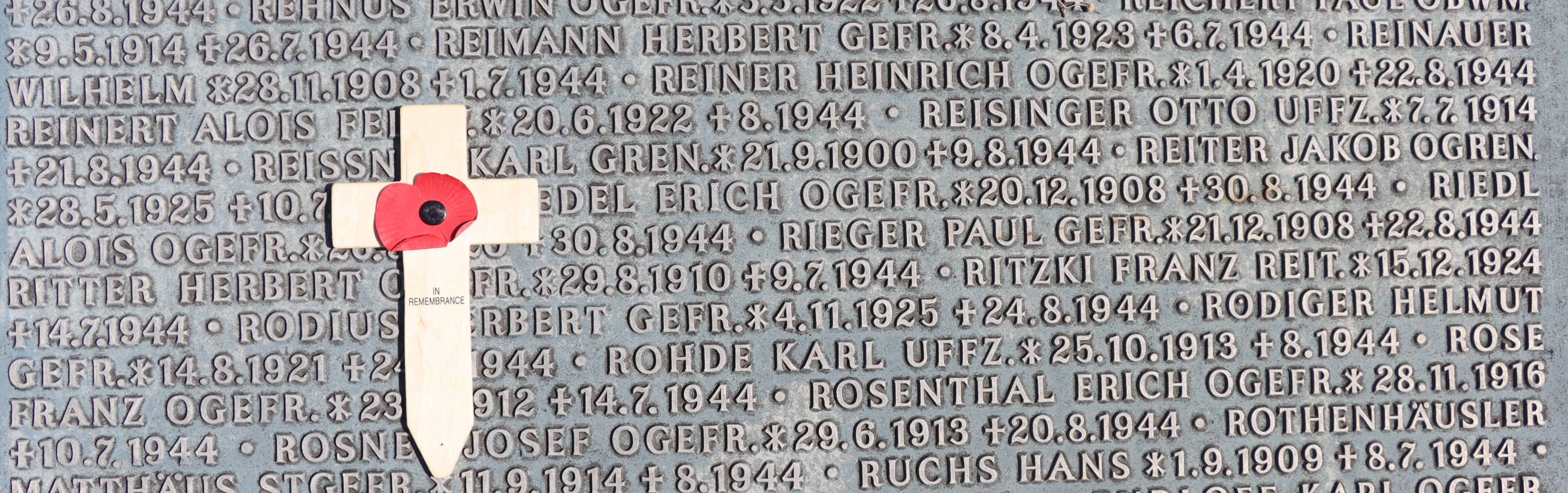 Grenadier OSWALD Hugo 09.07.1927 - 26.02.1945 18 Jahre alt aus Schallbach Kriegsgräberstätte in Pulheim-Sinnersdorf (DE) Name im Gedenkbuch verzeichnet |