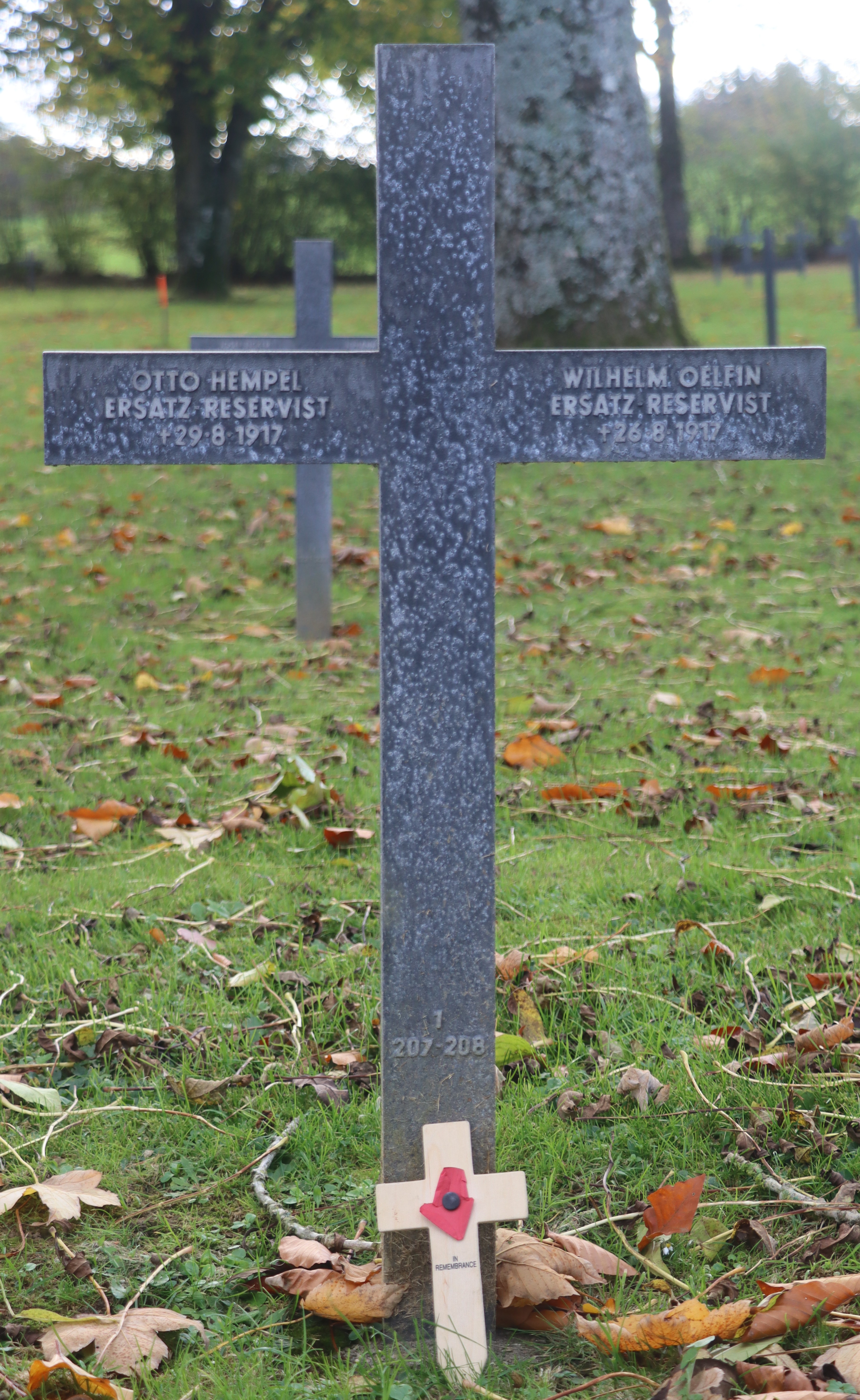 Unteroffizier ÖLFIN Emil 22.02.1890 - 02.08.1916 26 Jahre alt aus Schallbach 7. Badische Infanterie-Regiment No.142 1. Kompagnie Träger des Eisernen Kreuzes 2.Klasse (05.11.1915) Träger der Silbernen Verdienstmedaille am Bande der Militärischen Karl-Friedrich Verdienstmedaille (11.07.1916) Gefallen in Ripont (FR) Kriegsgräberstätte in Monthois (FR) Block 1, Grab 184 |