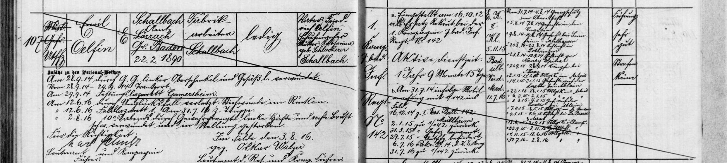 Friedrich 08.04.1900 - 18.10.1918 18 Jahre alt aus Schallbach Reserve-Infanterie-Regiment No.109 Ersatzbataillon, 4. Kompagnie Infolge Krankheit verstorben im Lazarett in Lörrach |