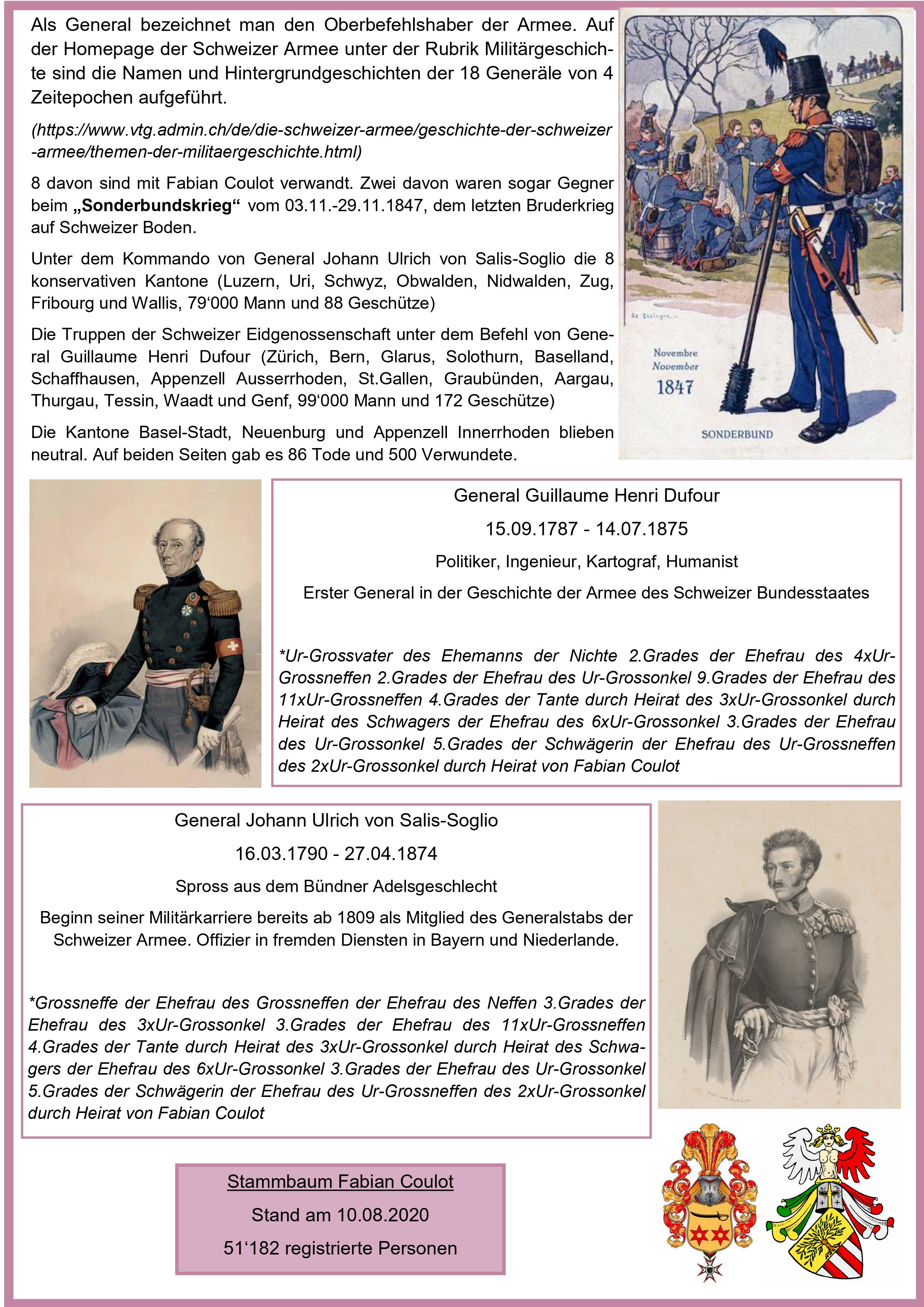 Generäle der Schweiz aus vier Zeitepochen mit ihren Hintergrundgeschichten
