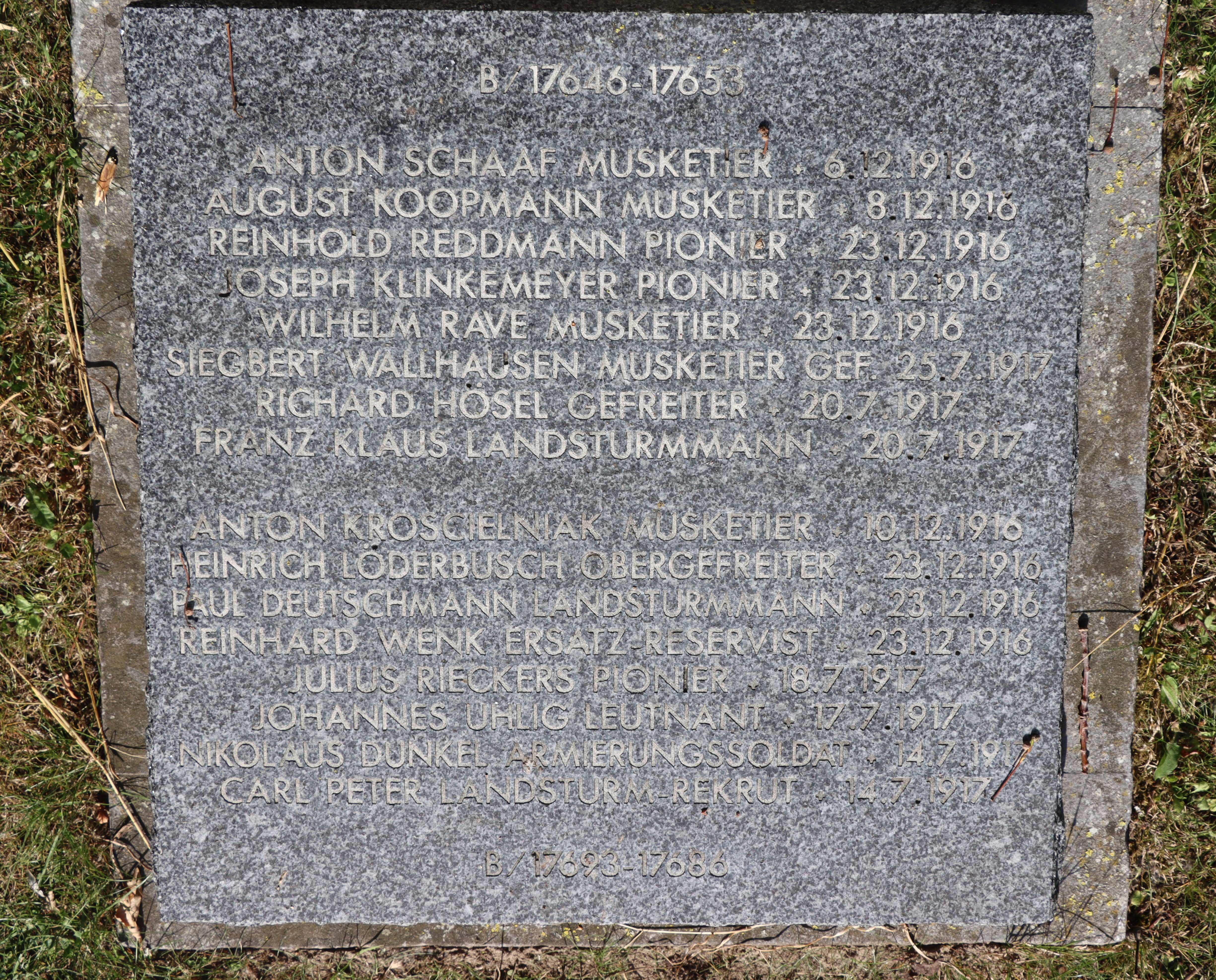 | Landsturmmann Hermann Friedrich WENK 13.11.1880 - 03.07.1916 36 Jahre alt aus Tannenkirch Infanterie-Regiment No.170 8. Kompagnie Gefallen bei der Schlacht an der Somme als er half gefallene Kameraden zu beerdigen |