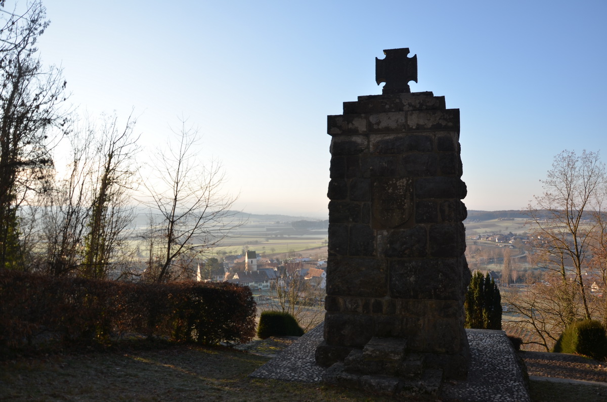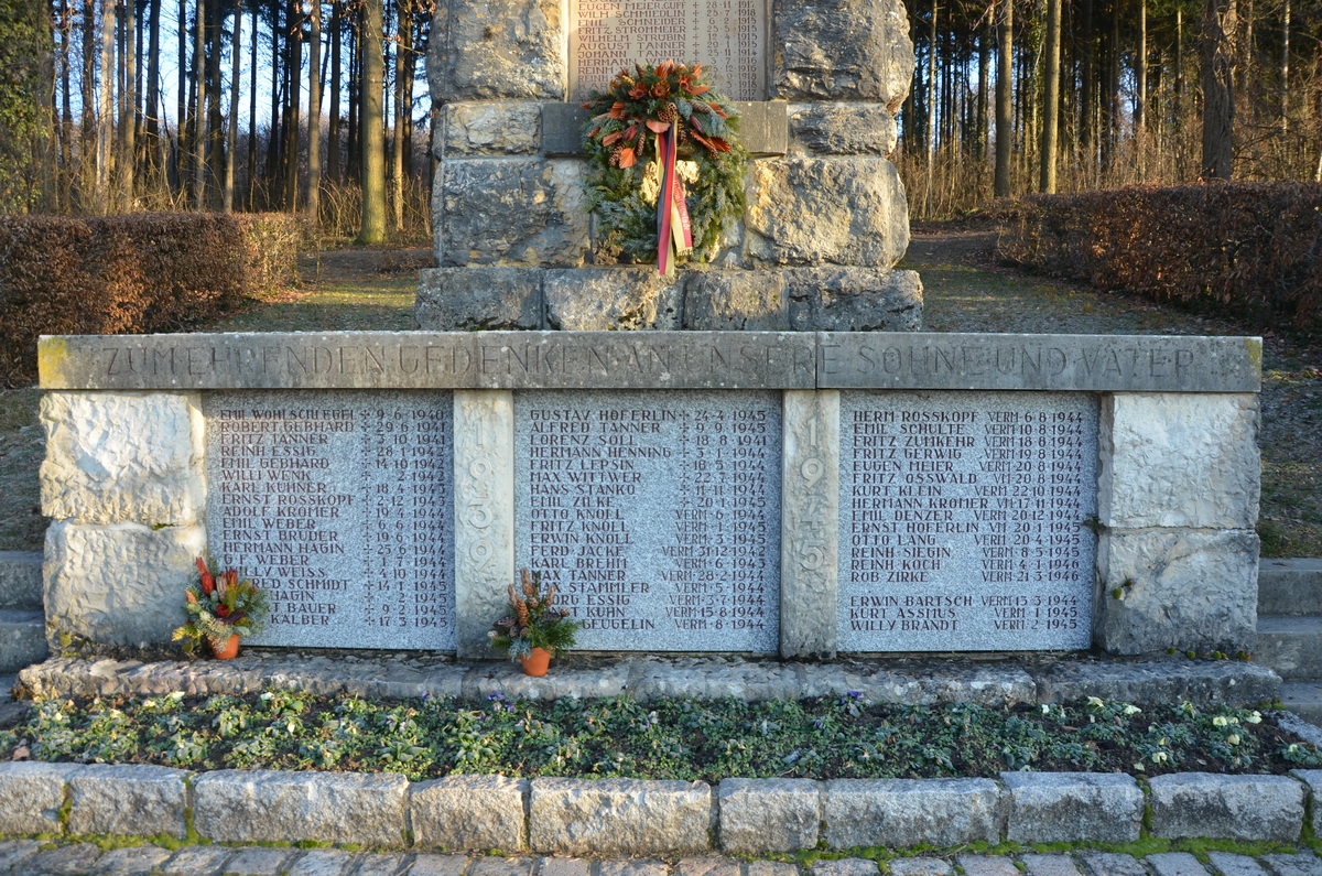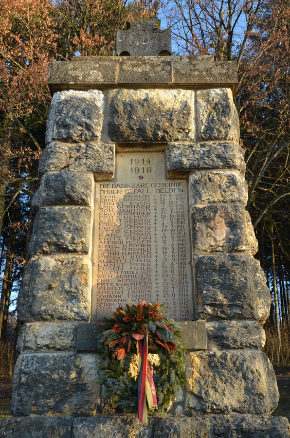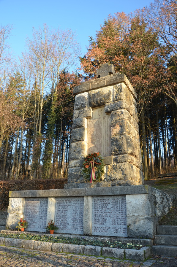 Kriegerdenkmal befindet sich oberhalb des Dorfes