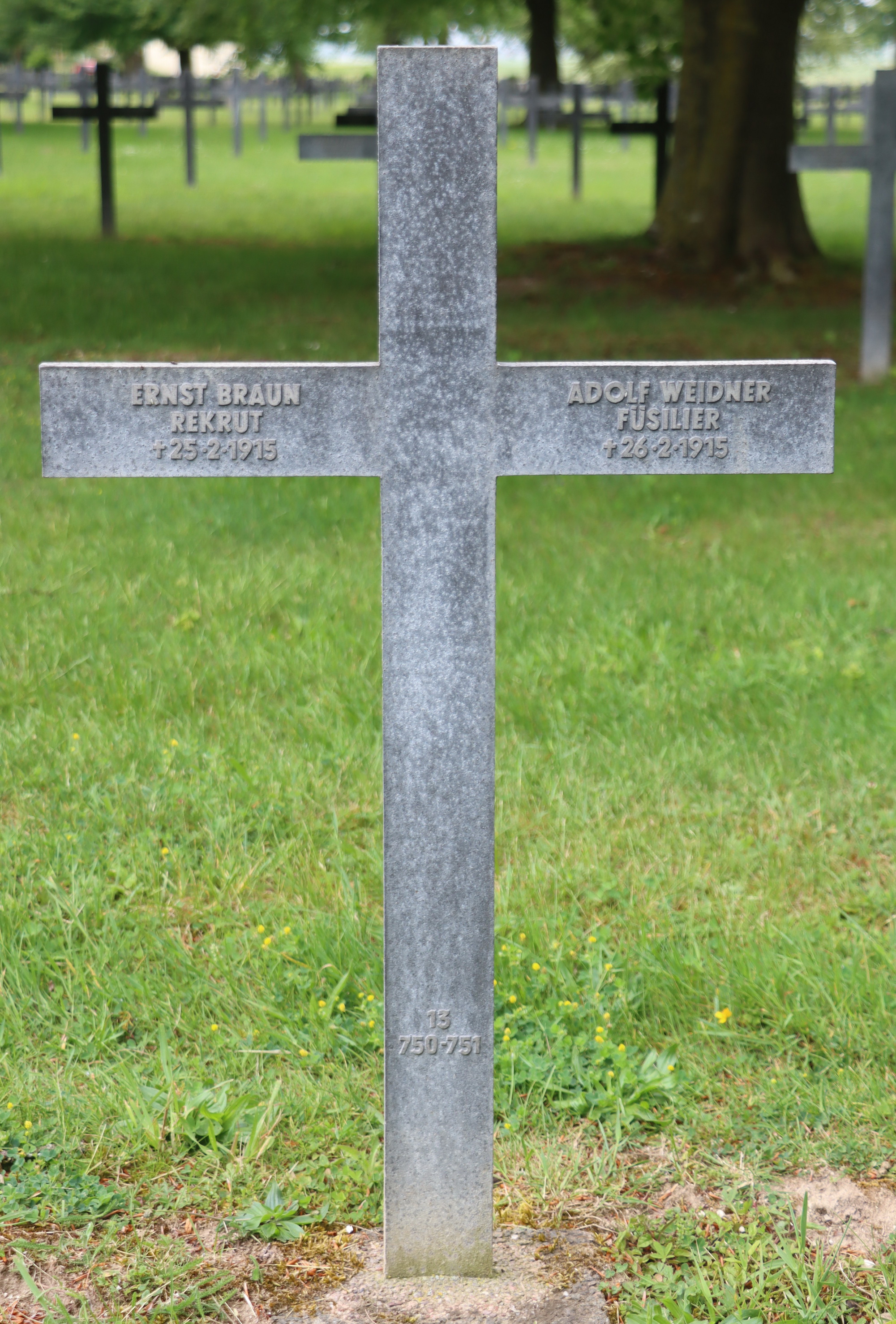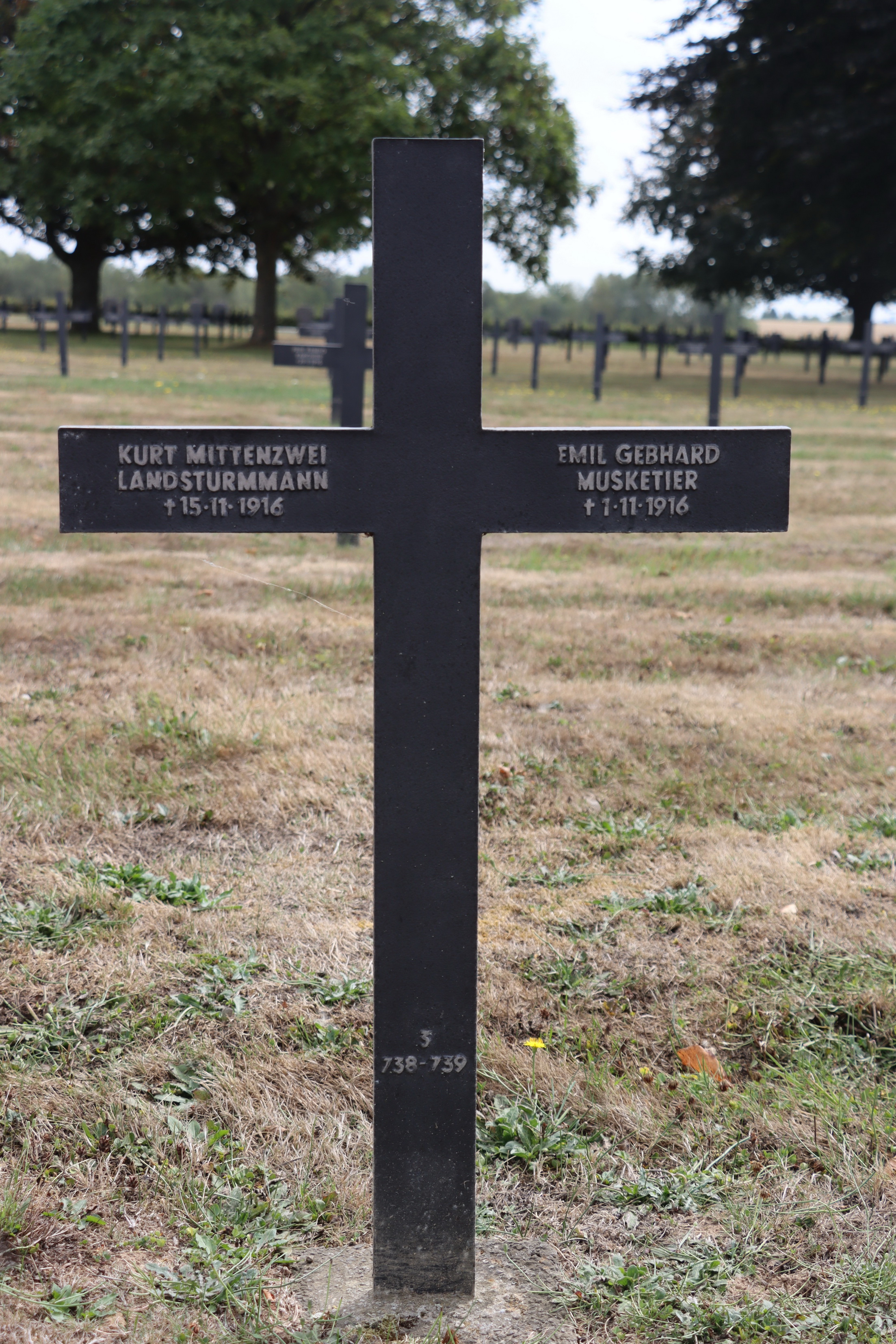 Musketier Reinhard WENK 19.01.1898 - 24.09.1918 20 Jahre alt aus Tannenkirch 7. Badische Infanterie-Regiment No.142 7.Kompagnie Kriegsgräberstätte in Laon-Bousoon (FR) Block 4, Grab 31 |