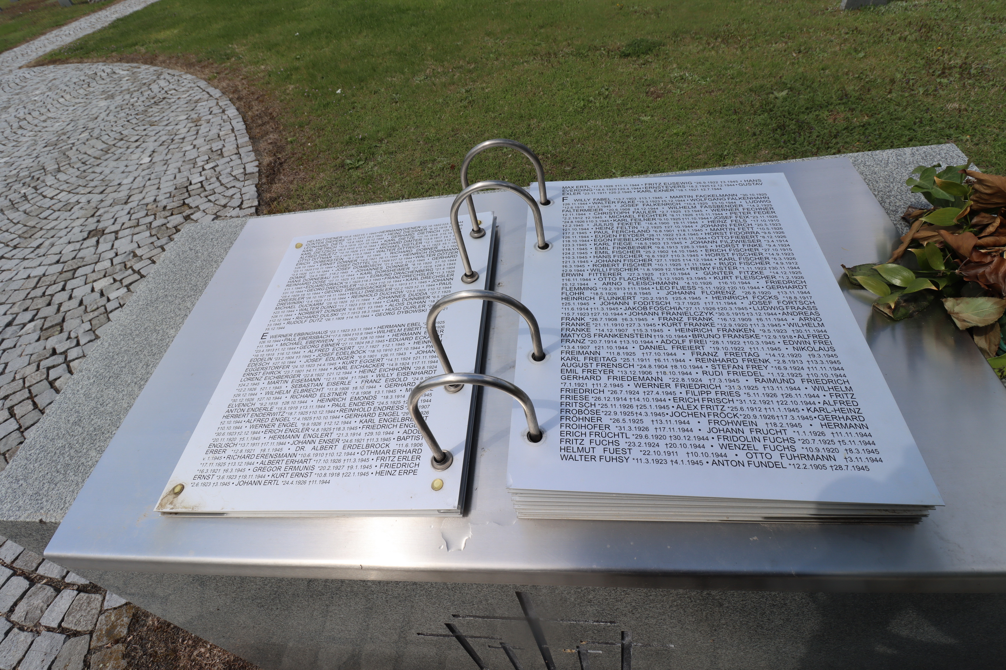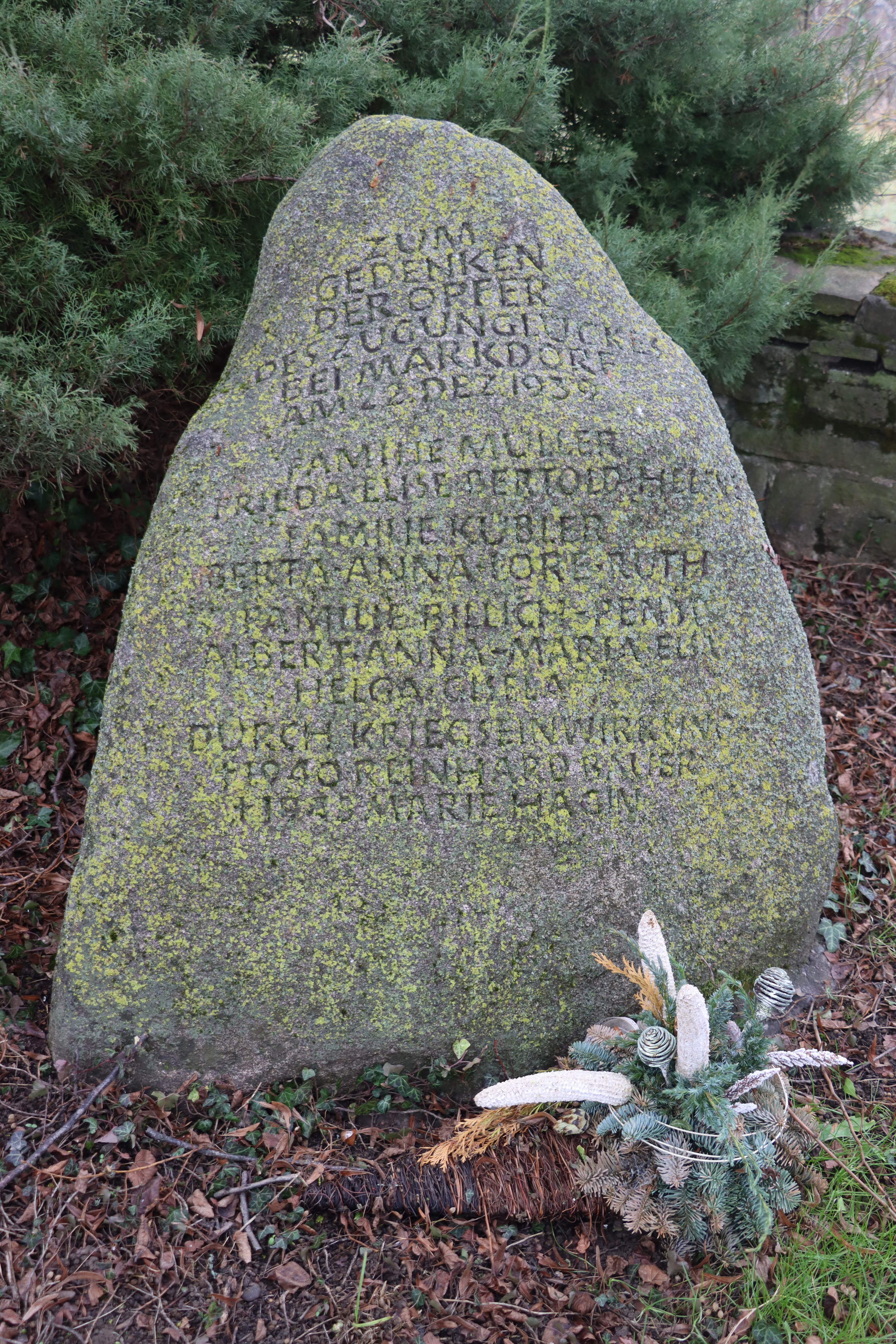 ihre Tochter und 2 Enkelkinder MÜLLER Elise 10.10.1902 - 23.12.1939 (37 Jahre alt) MÜLLER Berthold 21.04.1931 - 23.12.1939 (8 Jahre alt) MÜLLER Helene 22.11.1935 - 23.12.1939 (4 Jahre alt) |