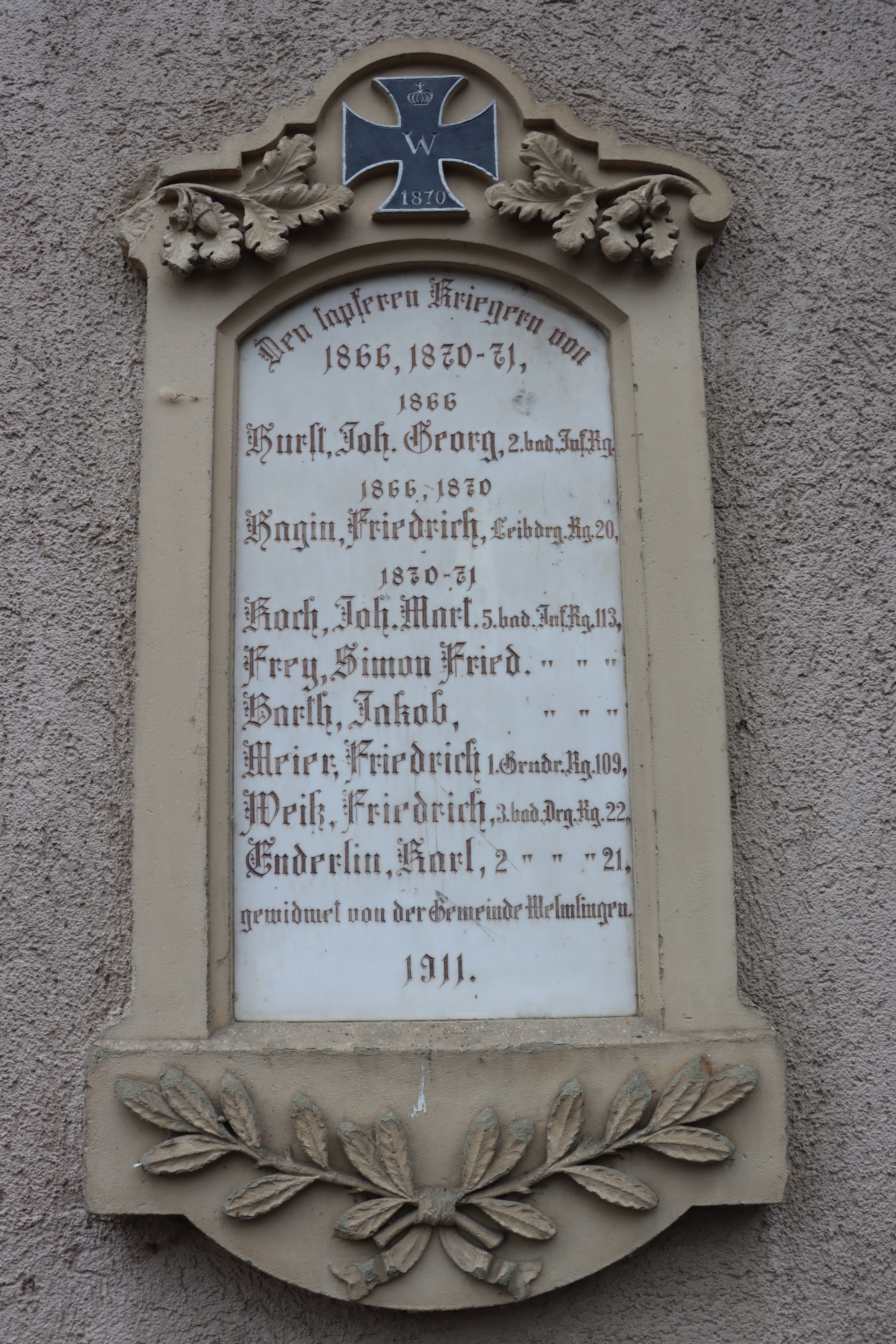 Veteran HURST Johann Georg 23.09.1841 -01.03.1913 2. Badisches-Grenadier-Regiment "Kaiser Wilhelm" No.110, 2. Kompagnie Teilnehmer im Deutscher Krieg (1866) Verwundet im Gefecht bei Wehrbach, Schussin den rechten Oberschenkel |