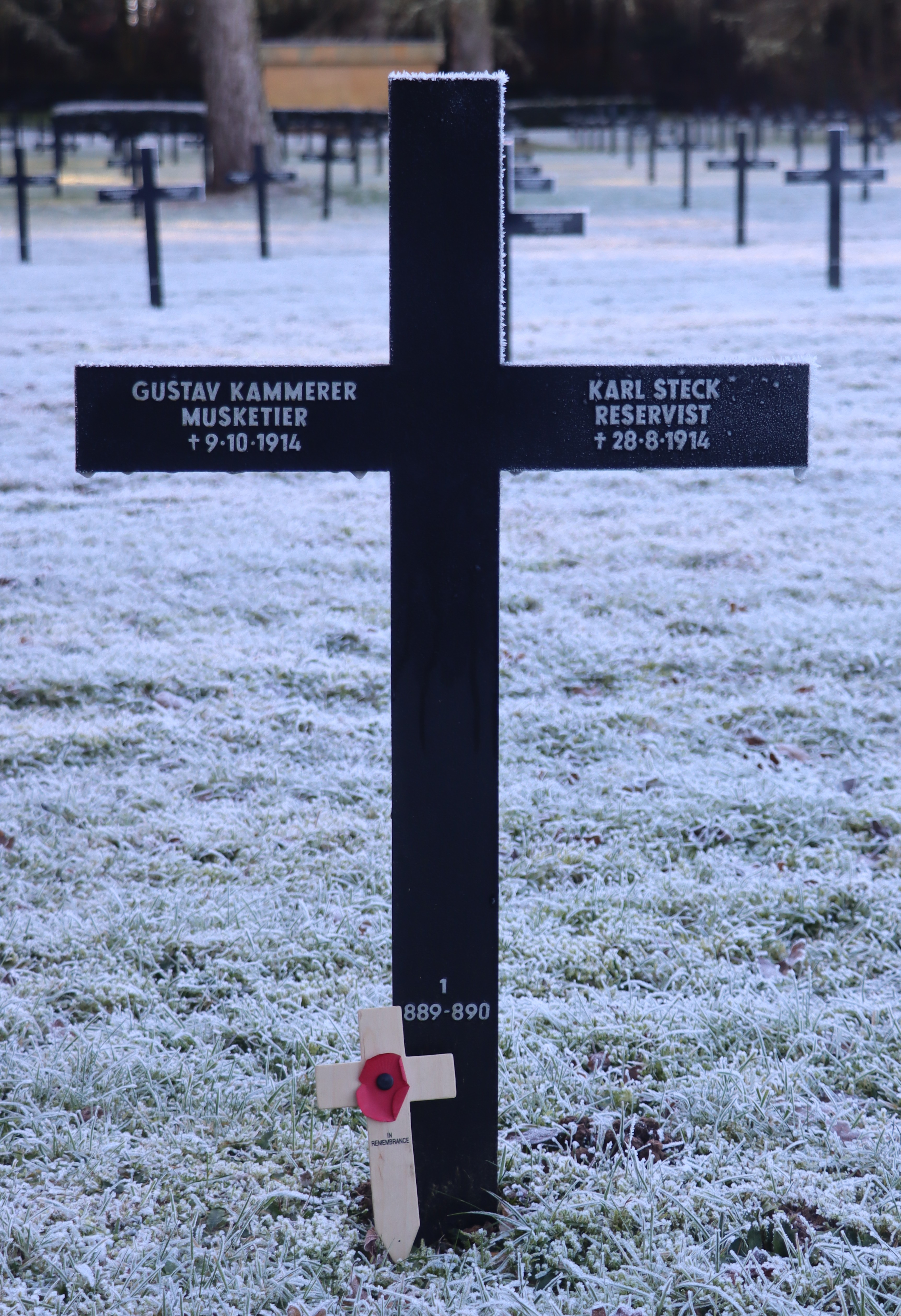 | Soldat KAMMERER Otto 21.02.1887 - 19.10.1918 31 Jahre alt aus Wintersweiler 3. Landsturm Infanterie Ersatz Bataillon Rastatt (XIV 28) 5. Kompagnie Verstorben im Lazarett an Lungenentzündung |