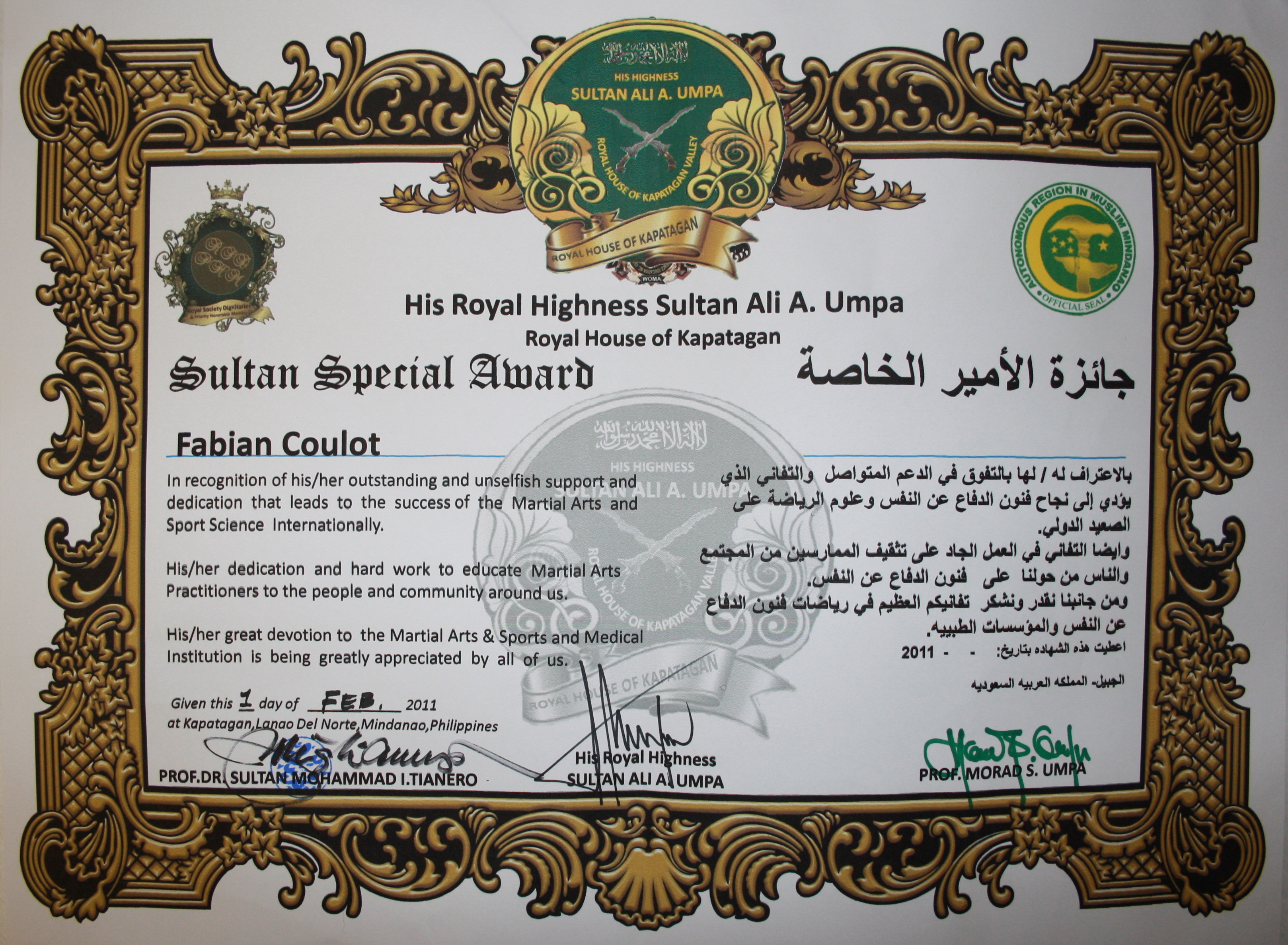durch Vermittlung von Prof. Dr. Sultan Mohammad I. Tianero, dem Gründer der Weltorganisation der Kampfsportarten (WOMA GROUP)